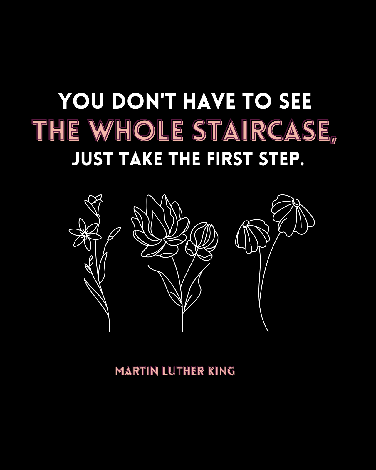 Designed for those who believe in progress, no matter how small, this “You Don’t Have to See the Whole Staircase” tote bag carries a message of courage and faith. Inspired by Martin Luther King Jr., the design combines minimal floral illustrations with bold typography to create a calm yet powerful visual statement.