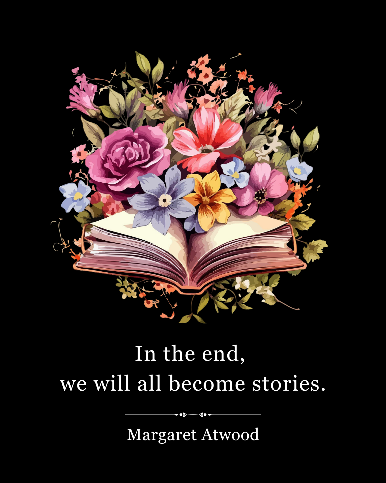 Designed for readers who believe every life tells a story, this “In the End We All Become Stories” tote bag brings depth and elegance to your everyday style. With minimal typography and a timeless quote, it captures the essence of literature.