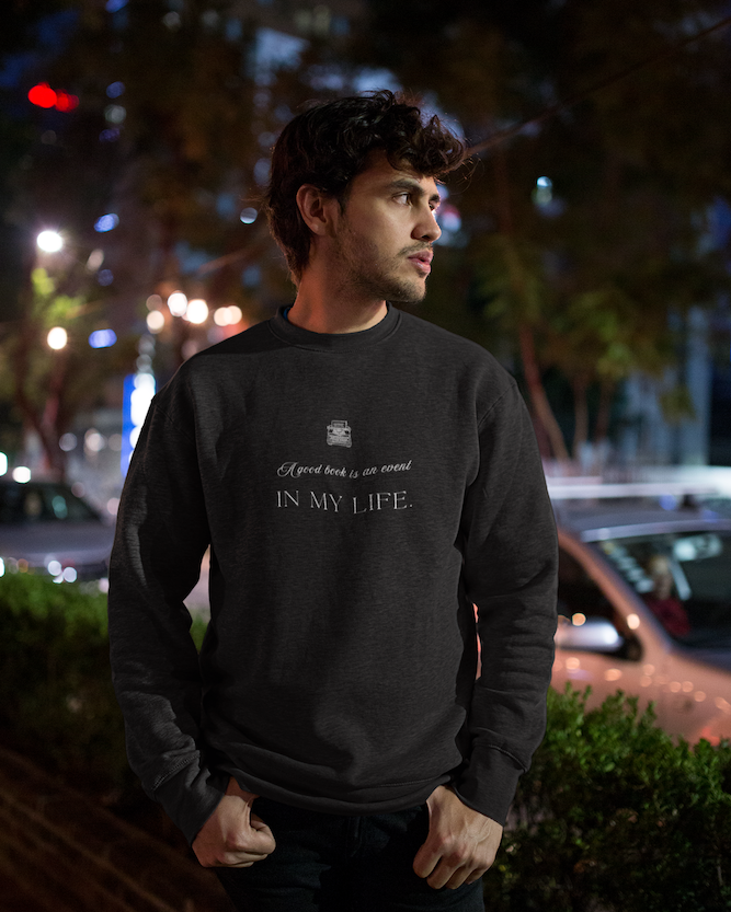 The A Book Is An Event In My Life sweatshirt celebrates readers who experience every story as something meaningful and memorable. For true book lovers, opening a novel is not simply a pastime — it is an event that brings new ideas, emotions, and discoveries into everyday life.