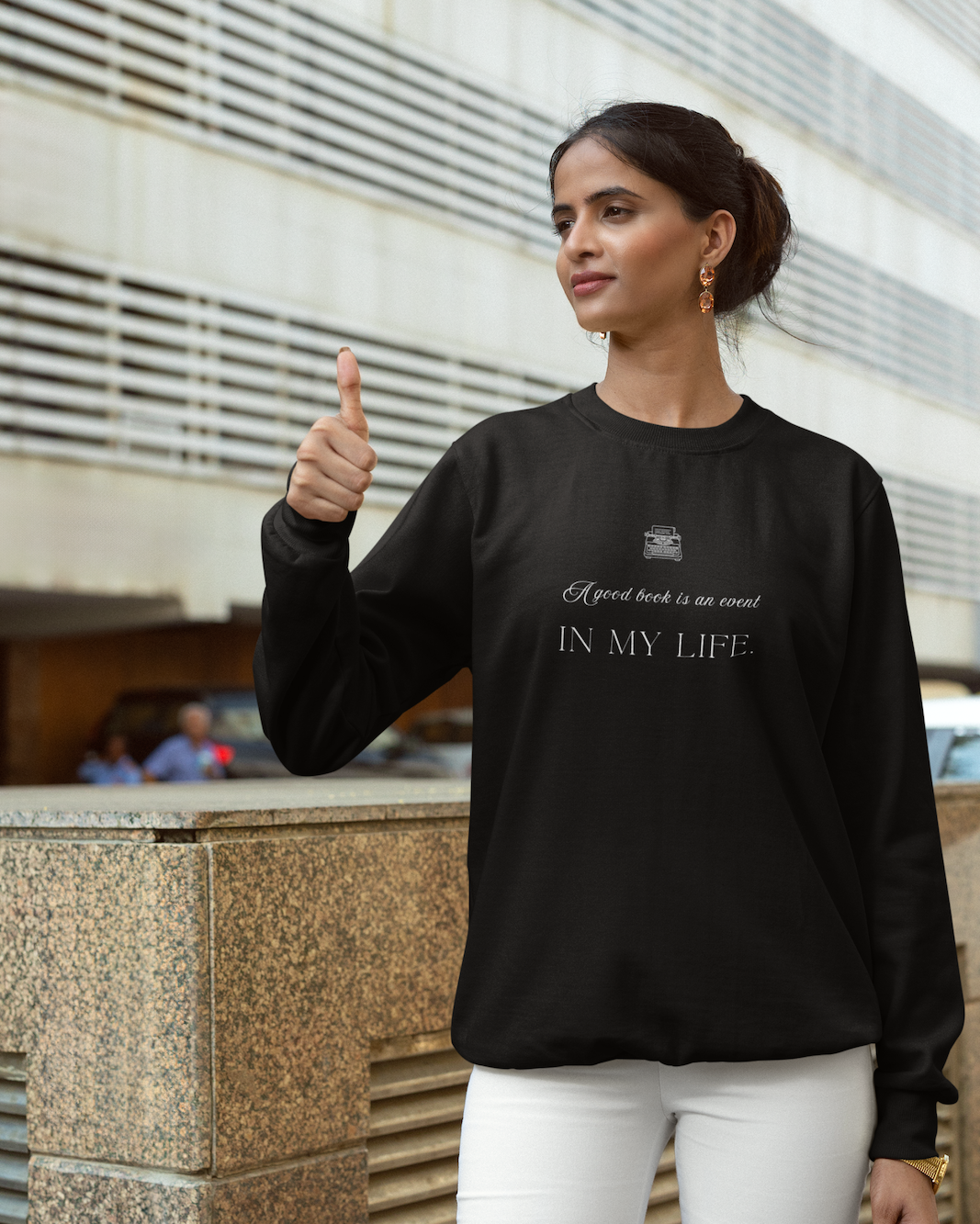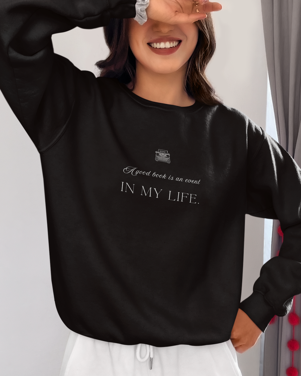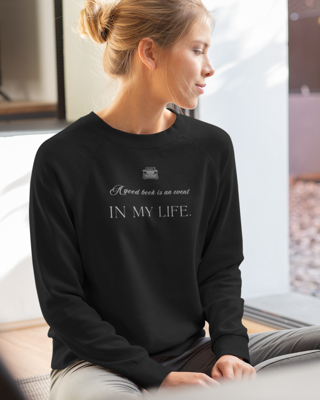 The delicate script introduces the sentiment, while the bold typography highlights “In My Life.” Together, the design reflects the deep connection readers feel with the books they encounter. After all, a powerful story can inspire reflection, spark imagination, and leave a lasting impression long after the final page. Because of this, the sweatshirt speaks to readers who treat each book as a moment worth savouring. It quietly celebrates the joy of discovering stories that shape our thoughts, expand our understanding, and become part of our personal journey.