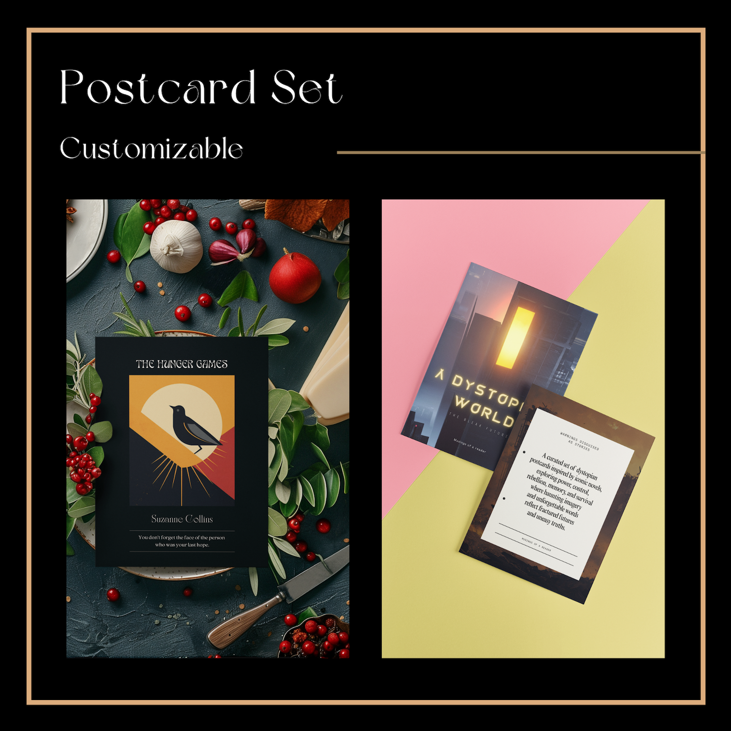 Comfort Classics Postcards (Set of 12) – This postcard set brings together striking dystopian imagery inspired by power, control, rebellion, and moral collapse. Each card pairs evocative visuals with unforgettable literary lines, making them perfect for collecting, gifting, or displaying. Together, they capture the quiet unease and urgency that define dystopian fiction.