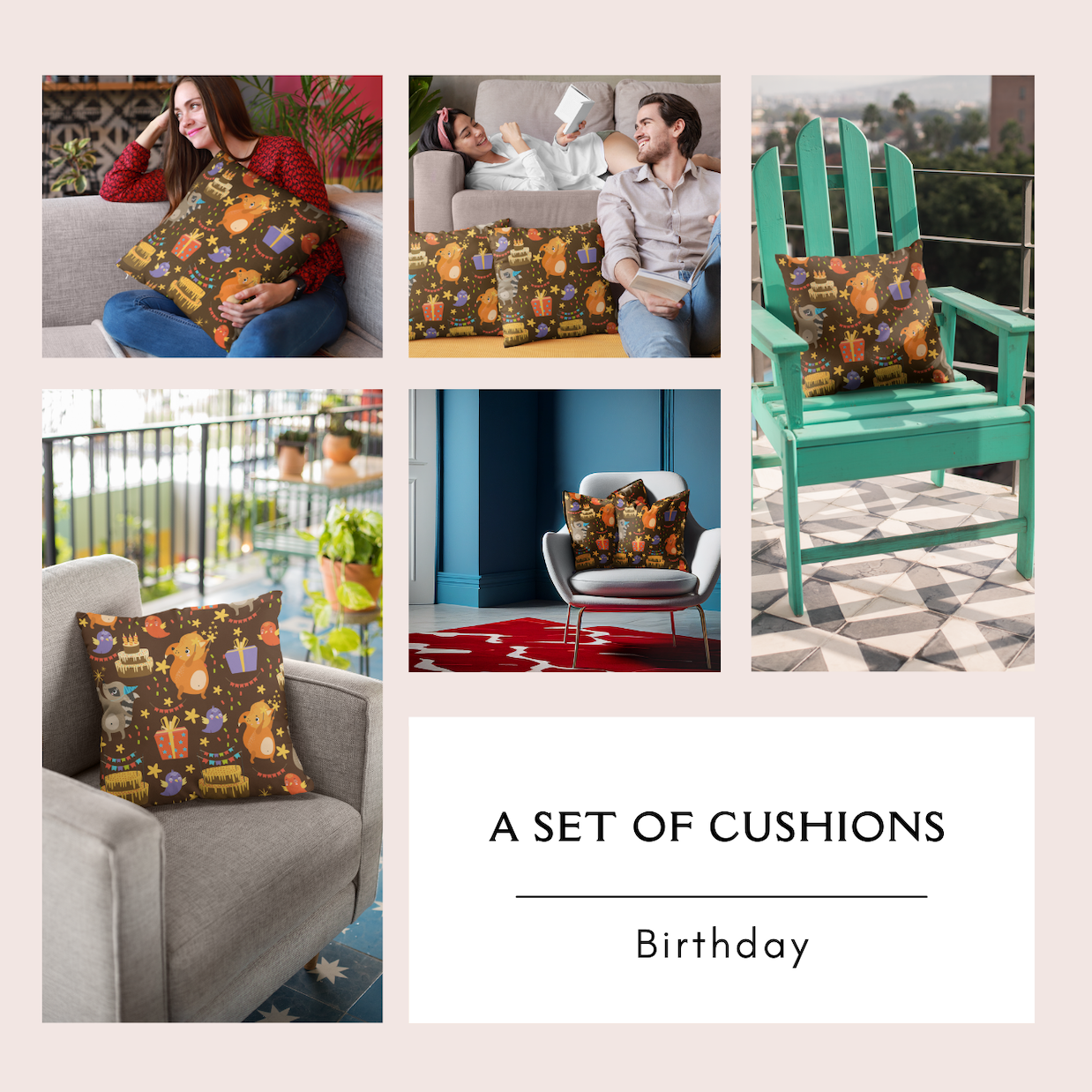 Set of Cushions – Soft, comforting, and visually warm, this cushion set adds emotional depth to reading corners and personal spaces. Designed to create a sense of ease and familiarity, these cushions encourage rest, reflection, and comfort—turning everyday moments into gentle celebrations.