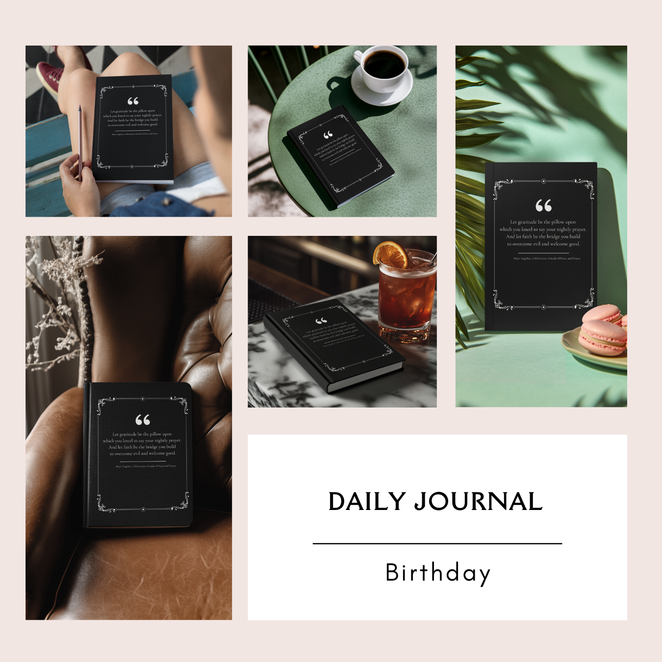 Daily Journal – Minimal, elegant, and deeply personal, the daily journal invites reflection and self-expression. Perfect for thoughts, memories, gratitude, or quiet planning, it becomes a companion through another year of growth. A birthday is the perfect time to begin anew, and this journal offers space to do just that.