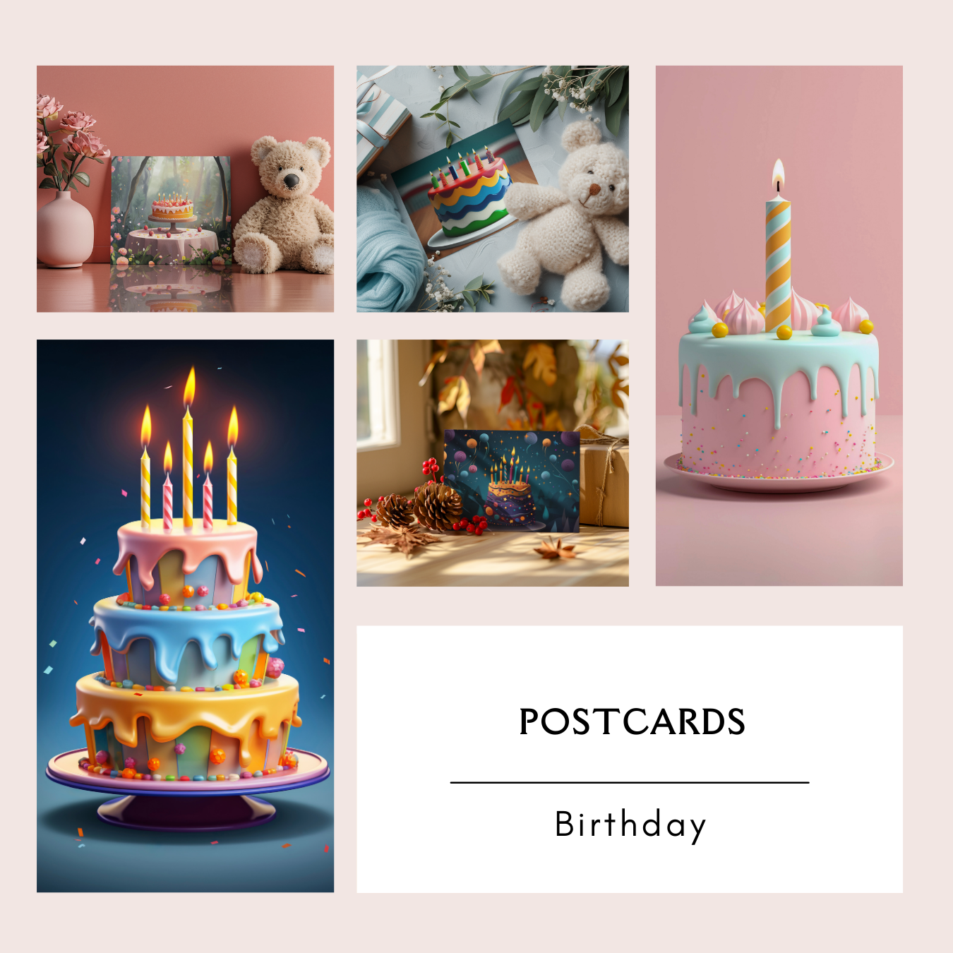 Set of 20 Birthday Cake Themed Postcards (Set of 20, Double-Sided Print) – This curated set of birthday postcards celebrates joy, warmth, and reflection. Designed to be shared, displayed, or treasured, they offer space for handwritten messages and thoughtful gestures. Perfect for gifting, journaling, or collecting, these postcards turn words into keepsakes.
