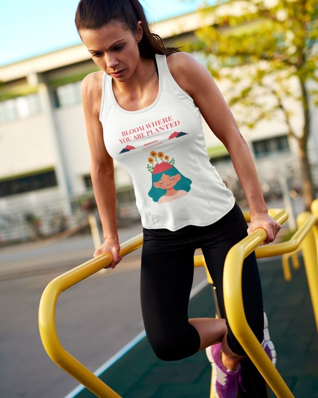 Inspired by the timeless message of Saint Francis de Sales, this thoughtful tank top celebrates resilience and quiet growth. The phrase “Bloom Where You Are Planted” reminds us that even in uncertain circumstances, we have the ability to grow, adapt, and flourish.