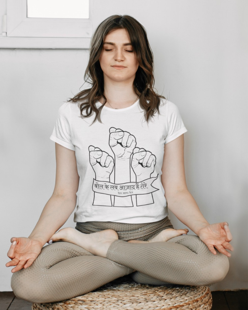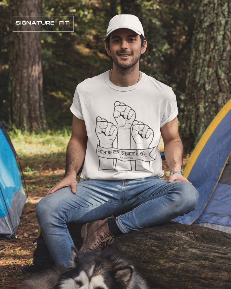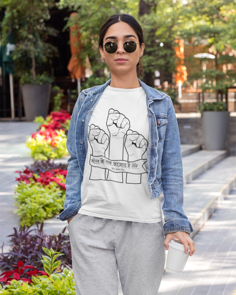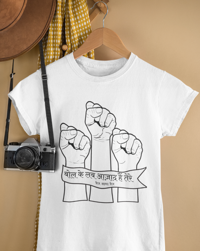 Wear your voice with our Bol Ke Lab Azaad Hain T-shirt. Inspired by Faiz Ahmed Faiz’s iconic verse, this powerful tee is a reminder that words matter, truth matters, and courage begins with speaking up.