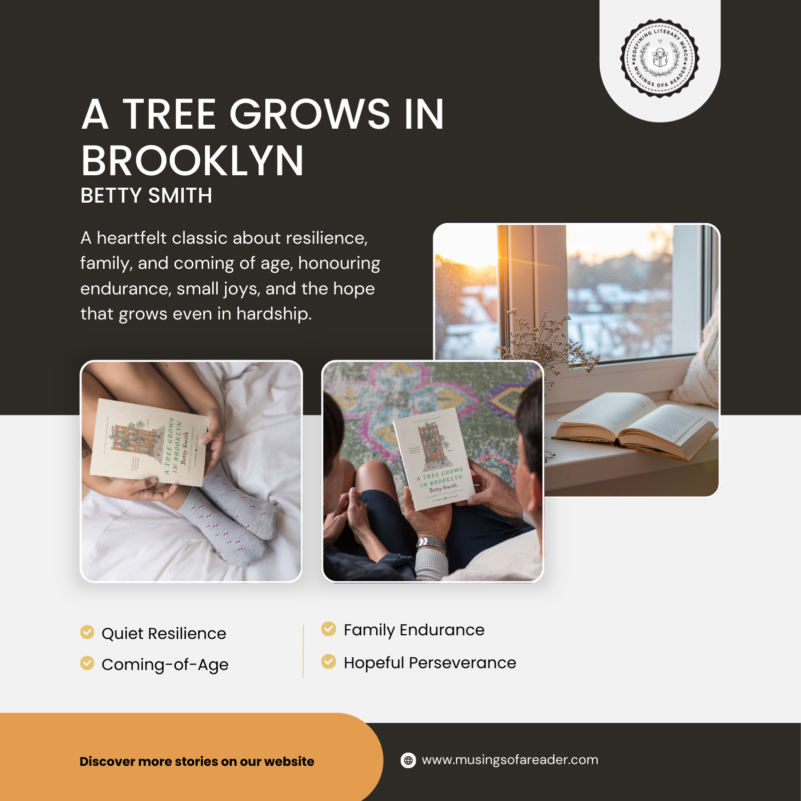 Book Synopsis: A Tree Grows in Brooklyn is a quietly powerful novel about growing up, perseverance, and the shaping force of family. Through the life of Francie Nolan, the story captures hardship without bitterness and hope without sentimentality. Smith’s writing is compassionate and observant, allowing meaning to emerge slowly. As a comfort classic, this novel offers grounding rather than escape. It reassures readers that endurance and small joys can coexist, making it especially resonant during reflective or uncertain times.