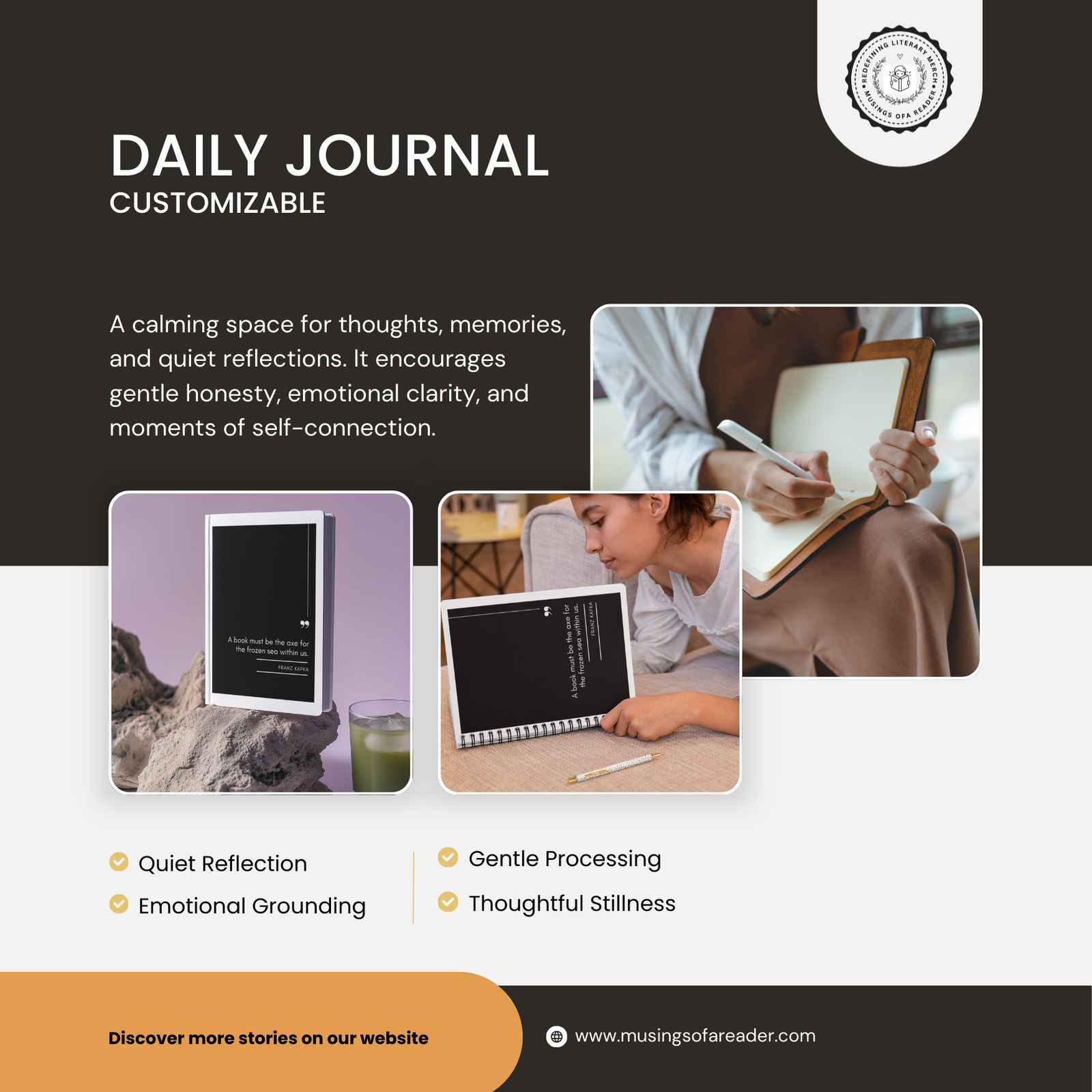 Daily Journal – The daily journal offers a simple, open space for reflection, note-taking, or personal writing. Its uncluttered format suits both seasoned journalers and those beginning a writing habit. Comfort classics often inspire introspection, and this journal provides a place to capture those thoughts without pressure. Whether used for quotes, reflections, or everyday observations, it supports mindful engagement with reading and personal experience.