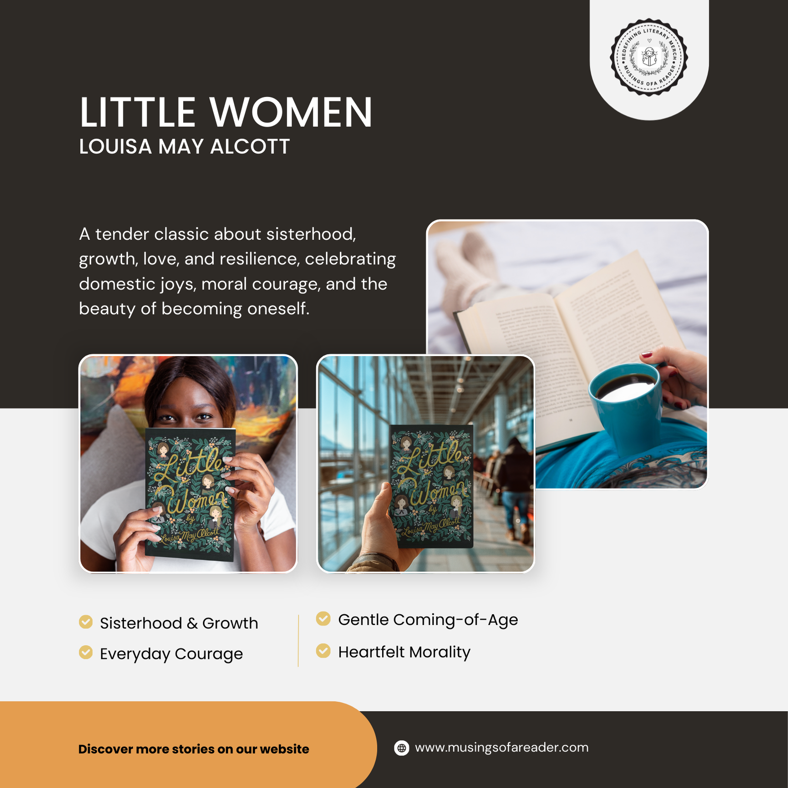 Book Synopsis: Little Women is a timeless coming-of-age novel that follows the lives of the four March sisters as they navigate love, ambition, loss, and moral growth. Rather than relying on dramatic turns, the story finds its strength in everyday moments—small choices, quiet sacrifices, and shared bonds. Alcott’s writing is gentle yet profound, offering a sense of emotional steadiness. As a comfort classic, this book rewards rereading. Each return feels familiar, reassuring, and quietly instructive, making it a perfect anchor for slow, reflective reading.