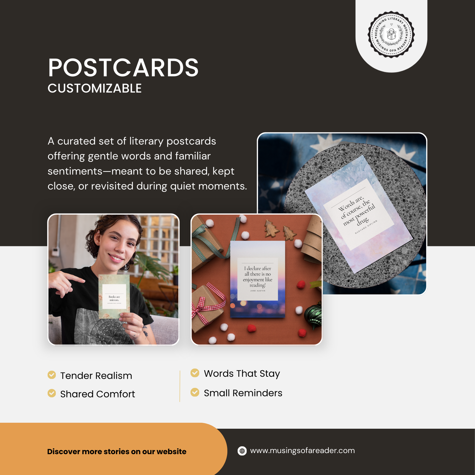 Comfort Classics Postcards (Set of 15) – These postcards are designed for quiet sharing and personal reflection. They invite handwritten notes, thoughtful messages, or simple reminders meant to last beyond the moment. Whether mailed, gifted, or kept close, they encourage slower communication and meaningful connection—echoing the comfort of stories meant to be returned to.