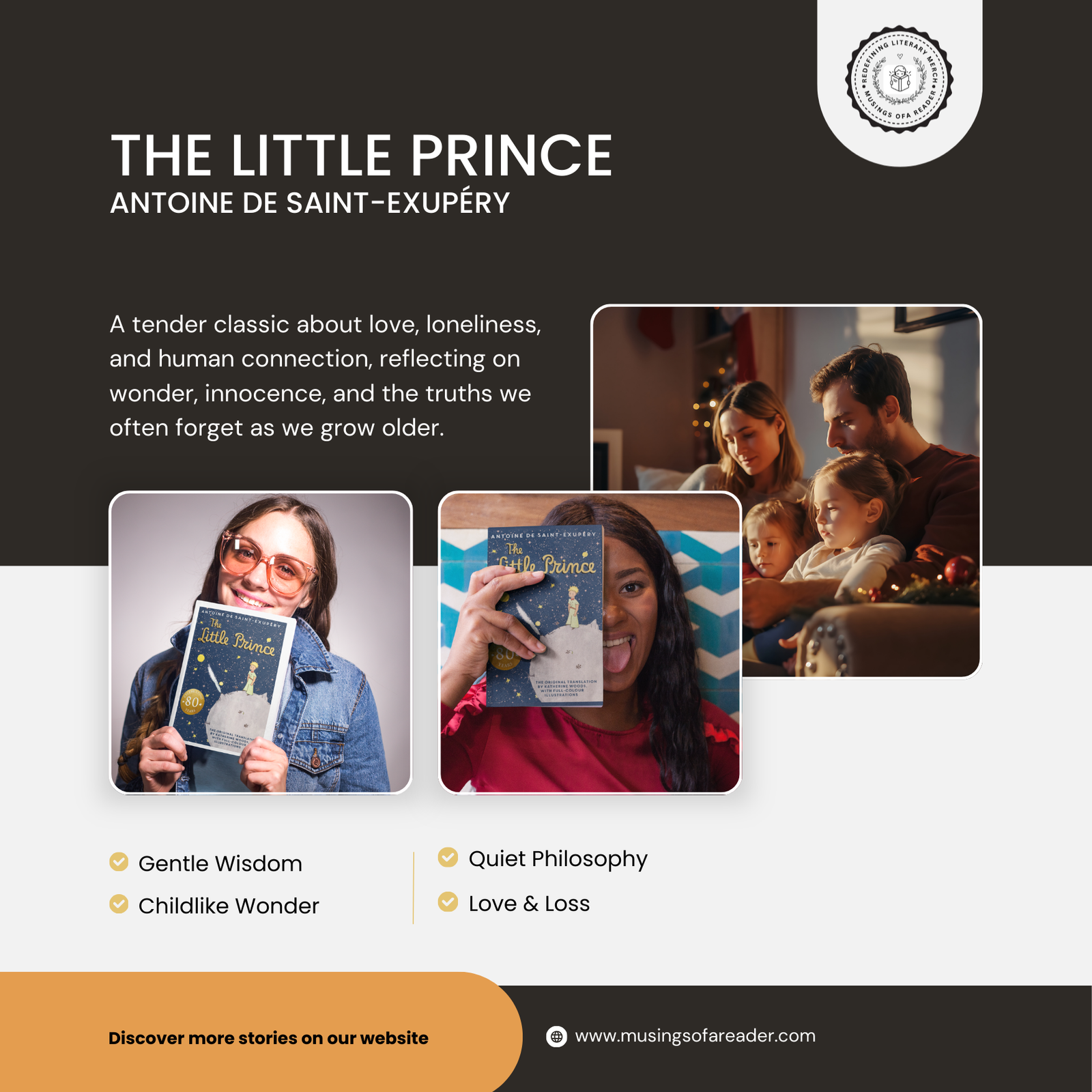 Book Synopsis: The Little Prince is a deceptively simple tale that carries profound emotional and philosophical depth. Through poetic language and gentle symbolism, it reflects on love, loneliness, responsibility, and human connection. Each reading reveals something new, depending on the reader’s stage of life. Its brevity invites pauses and rereads rather than haste. As part of the Comfort Classics Book Box, this book serves as a reminder that wisdom often arrives softly and that meaning lives in attention and care.