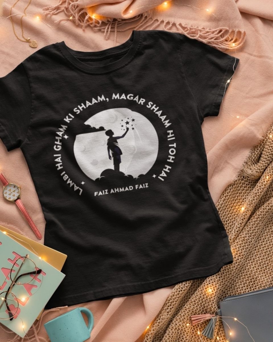 Inspired by the iconic verse by Faiz Ahmad Faiz, this Dil Na Umeed Toh Nahi T-shirt is for those who believe that even in the darkest times, light survives.
