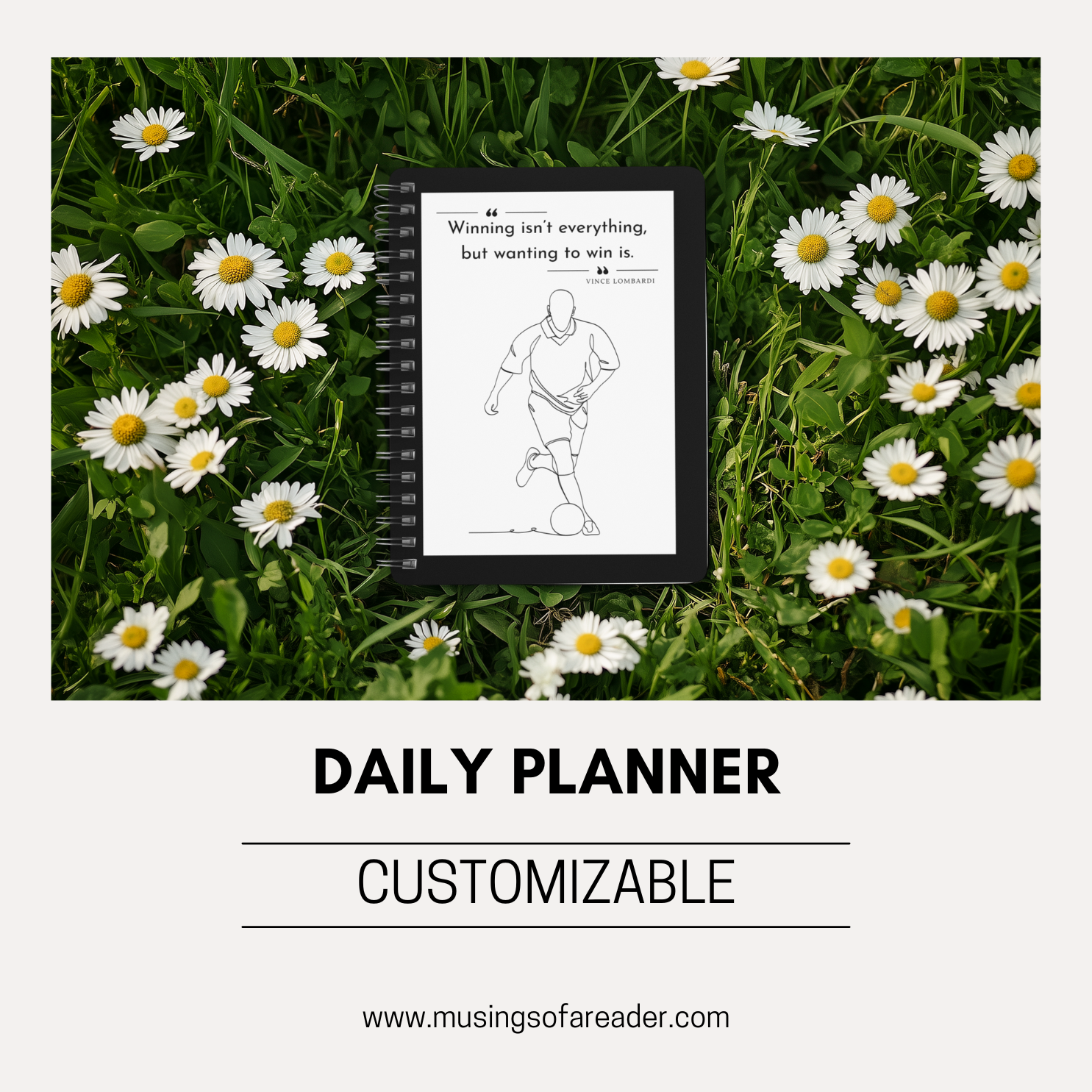 Daily Journal –This spiral-bound notebook is created for reflection, note-taking, and slow thinking inspired by the game. Featuring a minimalist illustration and timeless quote, it encourages readers to record ideas, memories, and observations. In turn, it supports deeper engagement with football beyond scores and fixtures.