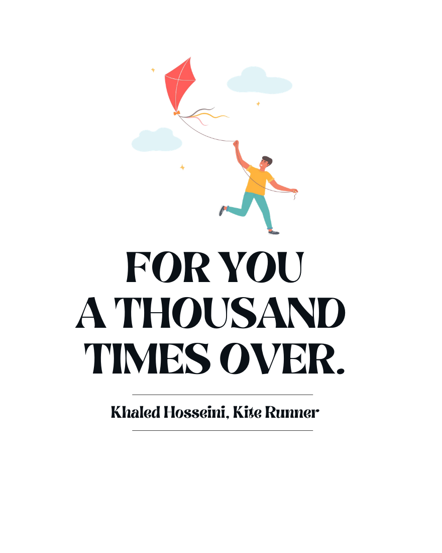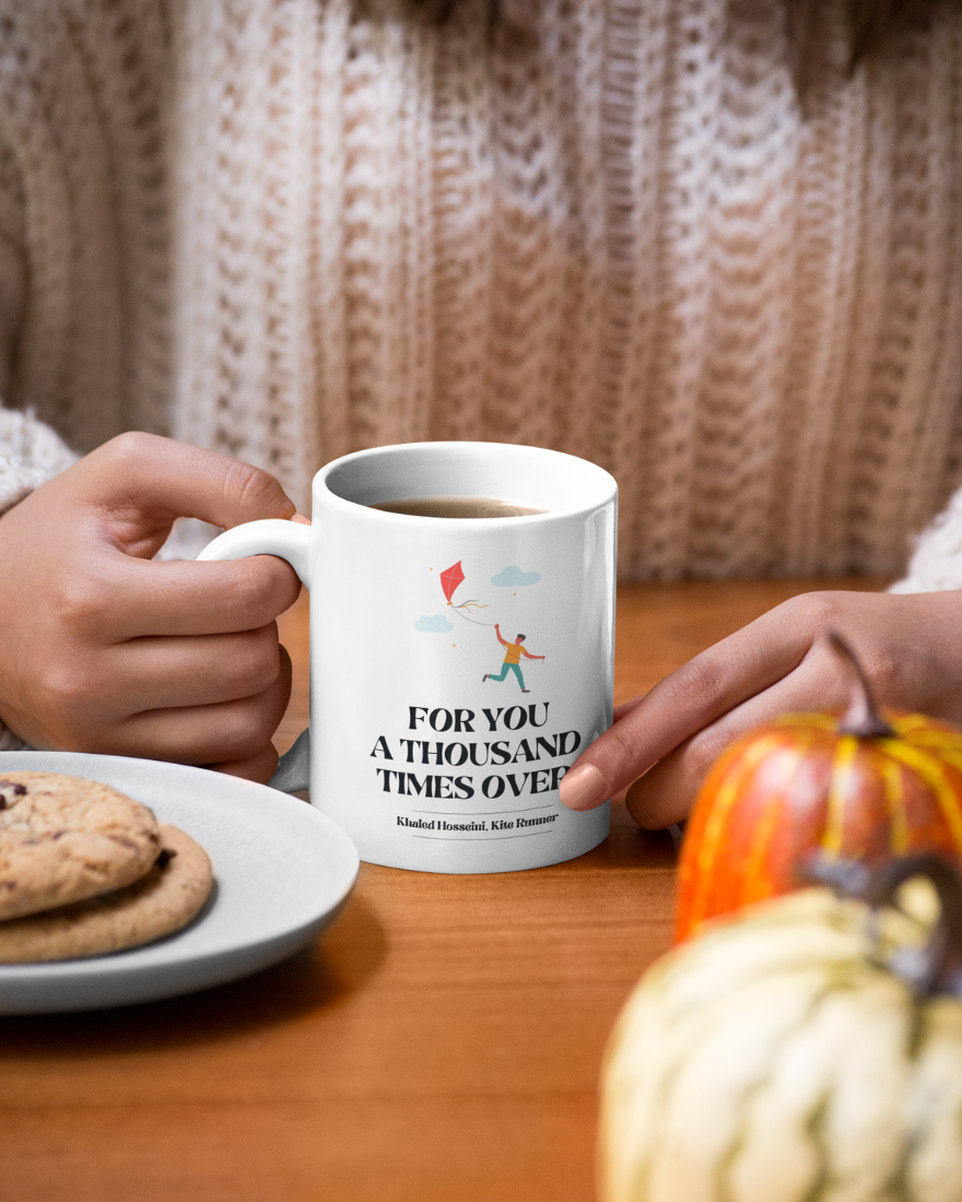 Begin your day with a reminder of loyalty and enduring friendship. This ceramic mug features one of the most beloved lines from The Kite Runner: “For you, a thousand times over.” Designed for readers who cherish powerful stories and unforgettable bonds, this literary quote mug brings a moment of warmth and meaning to your daily coffee ritual.