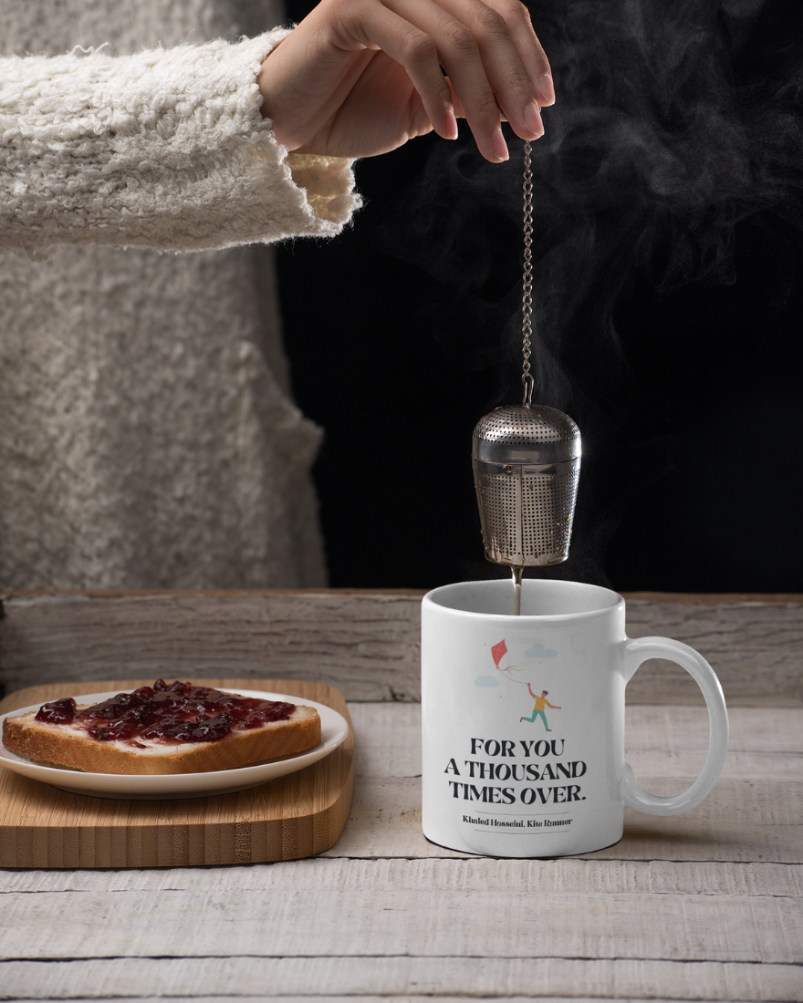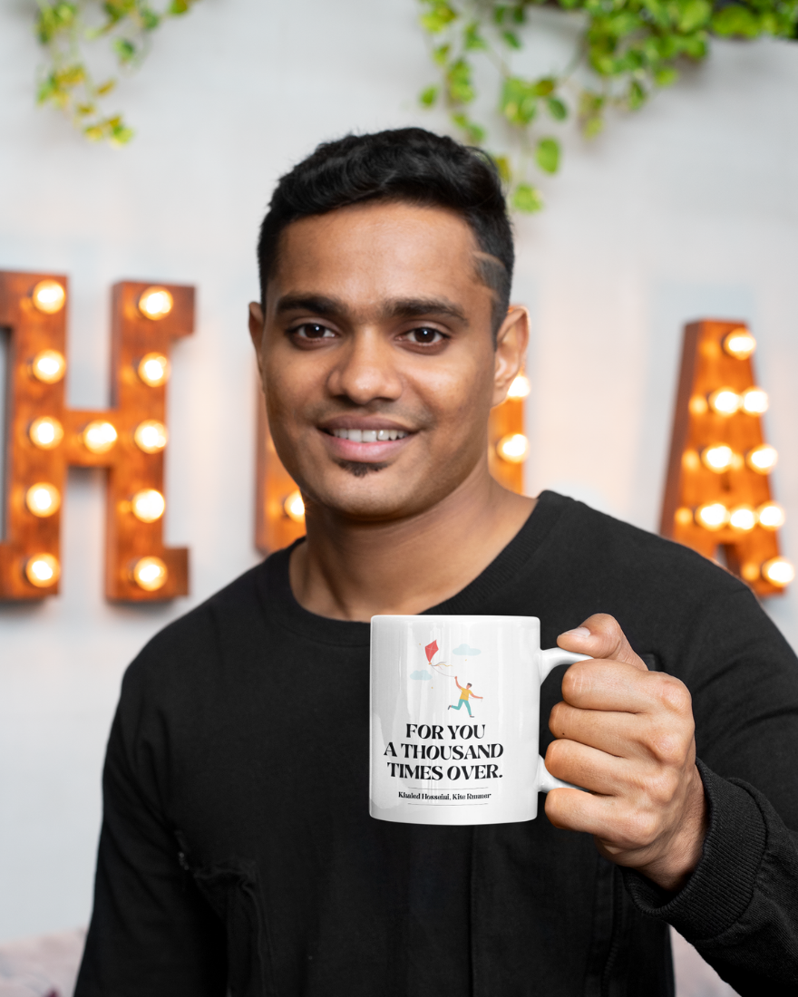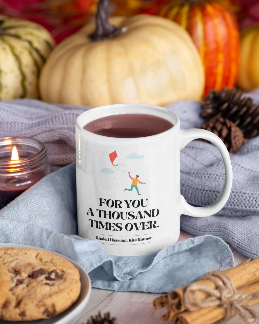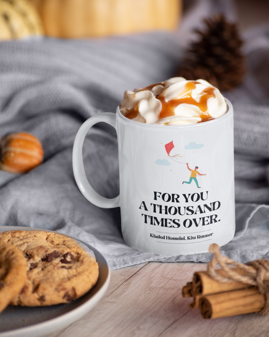 We are introducing our ceramic mug adorned with the poignant phrase, “For you, a thousand times over,” from the timeless novel The Kite Runner. This mug encapsulates the emotional depth and enduring themes of loyalty, redemption, and love in Khaled Hosseini’s masterpiece. Crafted from high-quality ceramic, it offers durability and literary elegance to elevate your coffee moments.