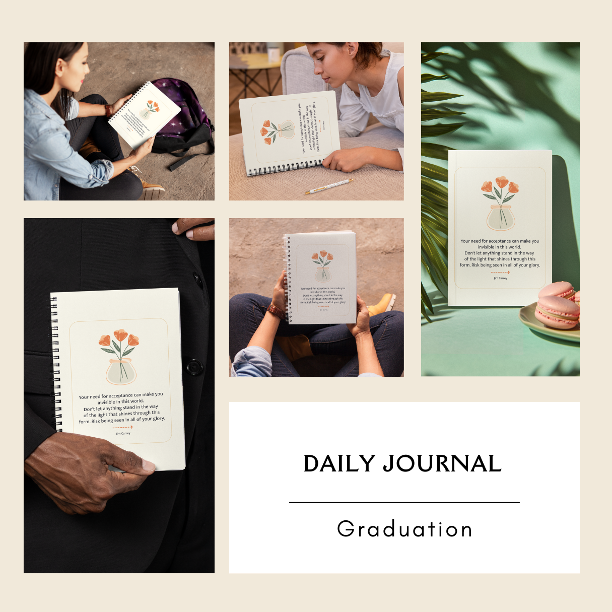 Daily Journal –Minimal and elegant, this journal is designed for moments of pause amid transition. Seen held close in a professional setting, it reflects reflection carried into the world—not confined to a desk. Its pages invite clarity, intention, and honest self-expression, whether used for planning next steps or processing what has been left behind. Graduation marks a shift from structure to self-direction, and this journal offers space to think slowly, write freely, and begin again without pressure.
