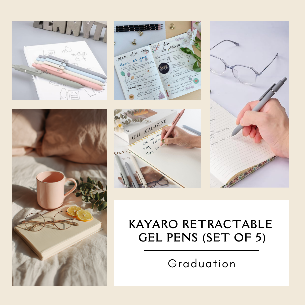 Kayaro Retractable Gel Pens (Set of 5) – Soft-toned and thoughtfully designed, these pens reflect clarity without rigidity. Seen resting beside sketches and notes, they support thinking that is exploratory rather than fixed. Their smooth flow encourages writing without friction—ideal for journaling, planning, or capturing fleeting ideas. These are pens meant for reflection as much as productivity. For graduates navigating open-ended paths, they become tools for shaping intention, not just checking boxes.