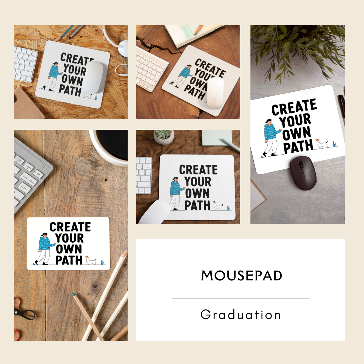 Mousepad – Clean, modern, and understated, this mousepad integrates seamlessly into workspaces where focus matters. Seen beside a laptop and everyday essentials, it supports long hours of thinking, creating, and learning. Its simplicity keeps attention where it belongs—on the work itself. As graduates build new routines, this mousepad offers ease and comfort, grounding digital work in a physical sense of stability.