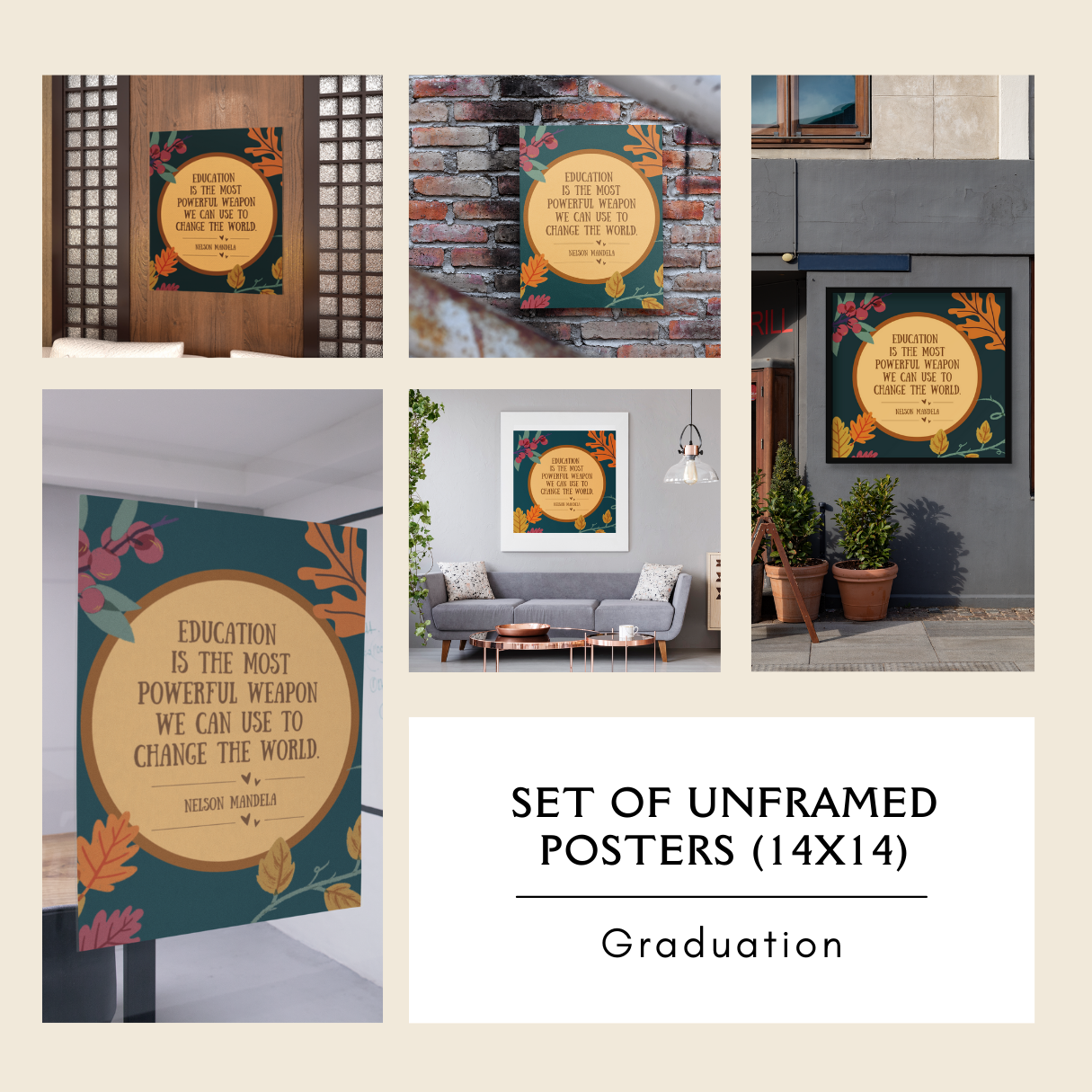 Set of Unframed Poster (14×14 inches) – These literary-inspired posters are designed to live gently within everyday spaces. Seen displayed in real-world settings, they feel grounded rather than ornamental—bringing thoughtful words into view without demanding attention. Ideal for graduates stepping into new environments, these posters act as visual pauses—reminding the reader to stay rooted while moving forward. They offer inspiration without urgency, presence without noise.