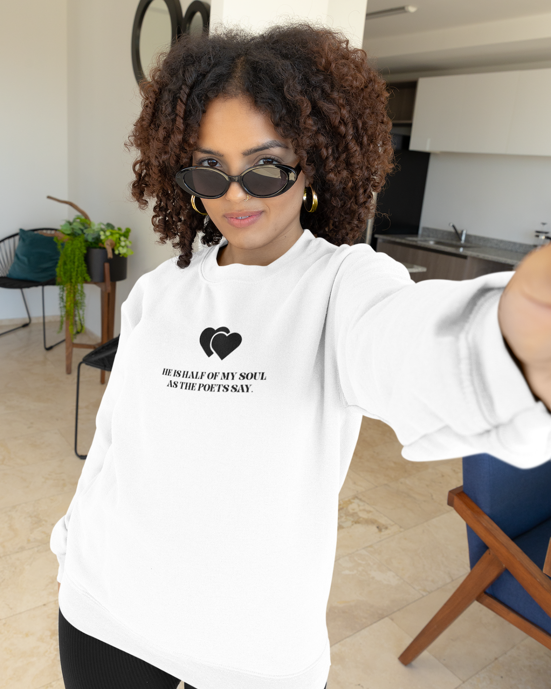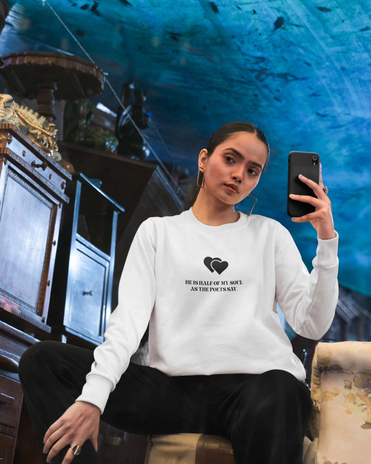 The “He Is Half of My Soul, As the Poets Say” sweatshirt celebrates one of the most beautiful lines from The Song of Achilles by Madeline Miller. Inspired by the legendary love story of Achilles and Patroclus, the quote captures the depth of devotion, loyalty, and connection between two souls.