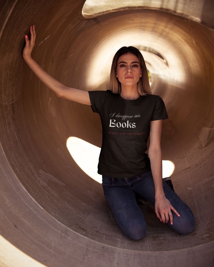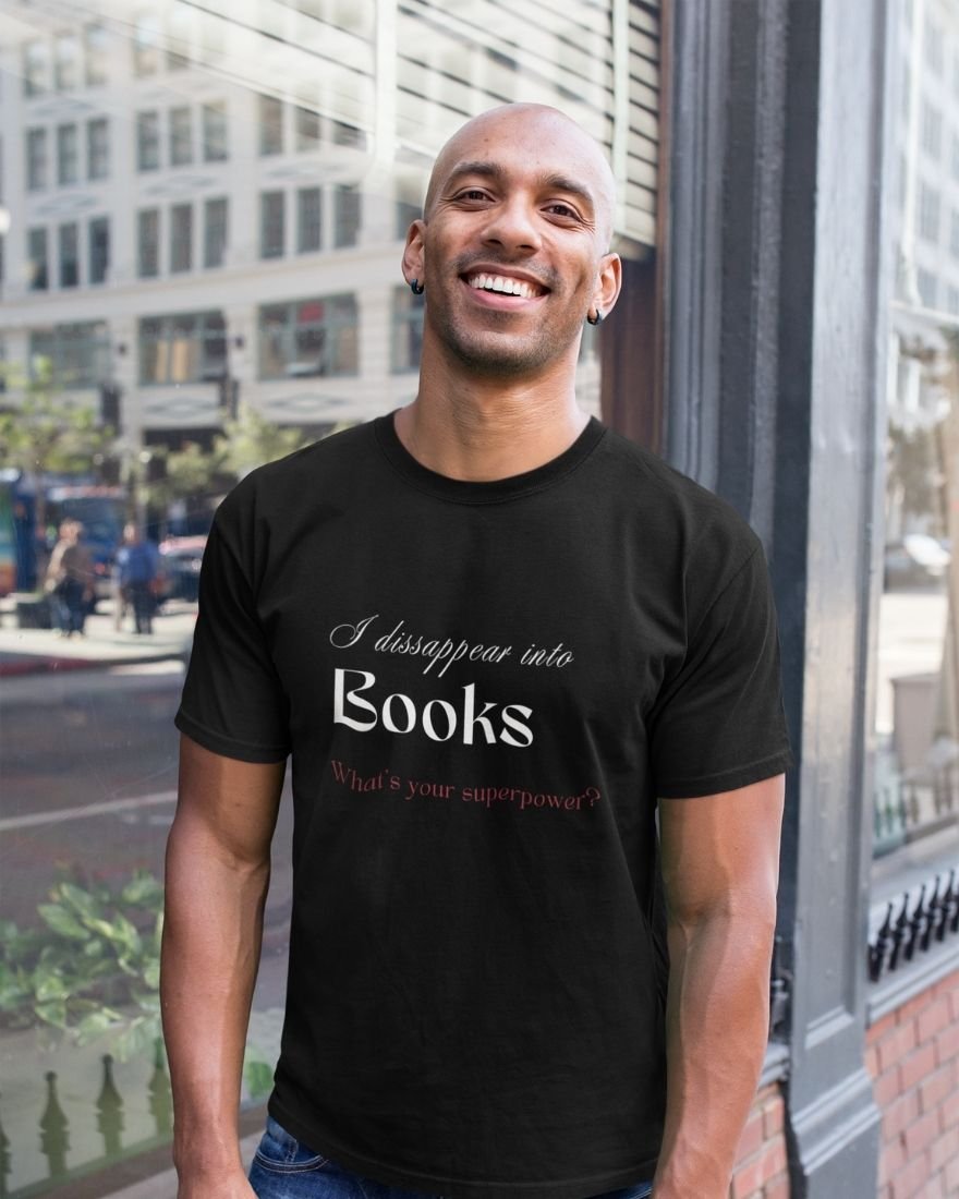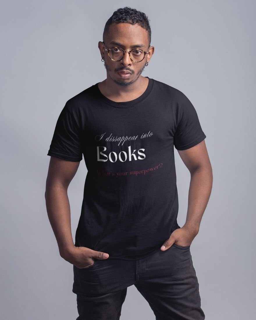 The I Disappear Into Books… What’s Your Superpower? T-shirt transforms imagination into identity. Designed for readers who don’t just read stories but live inside them, this piece celebrates the magic of literary escape.