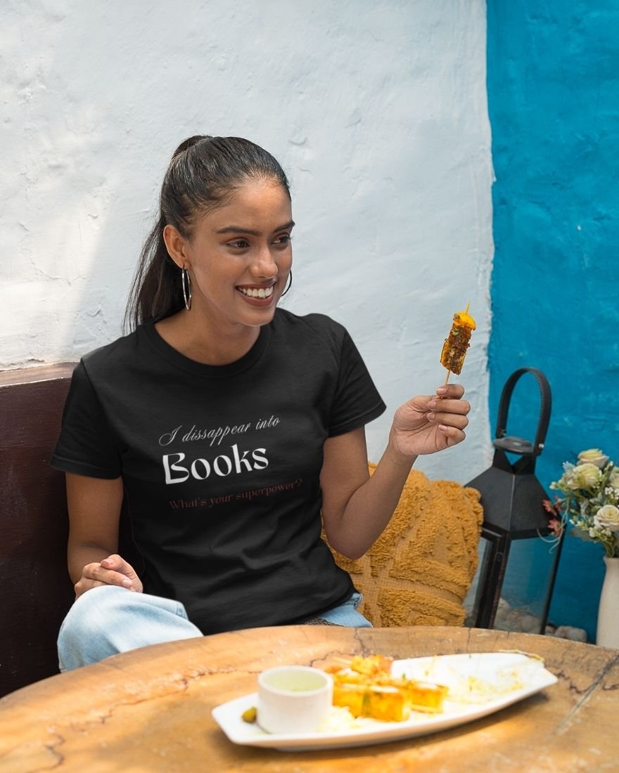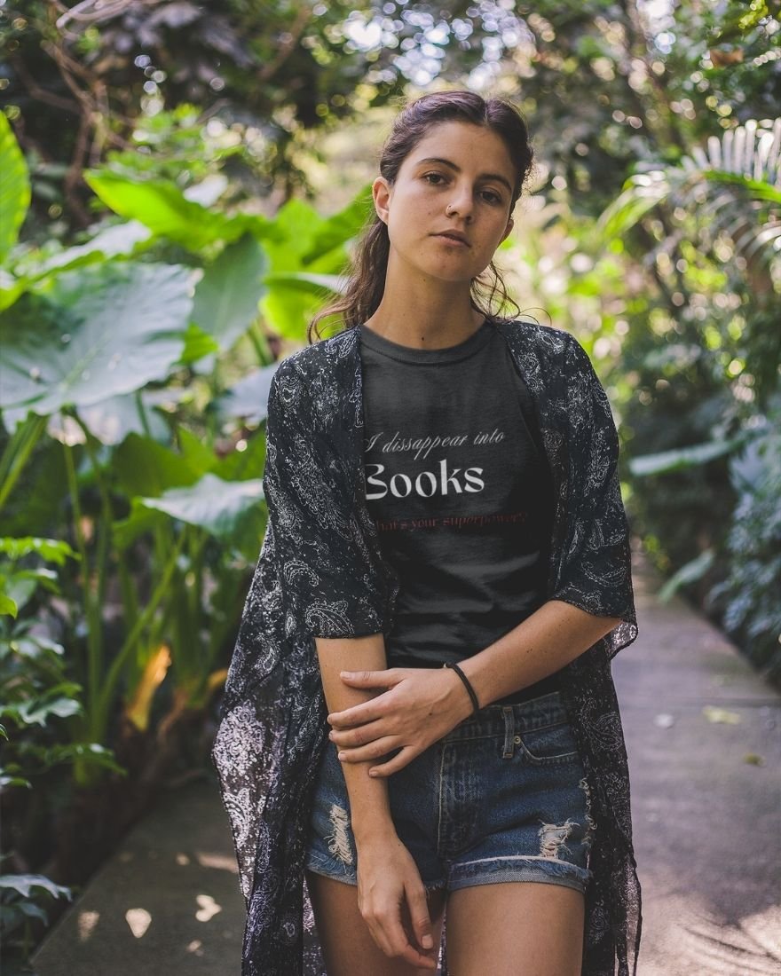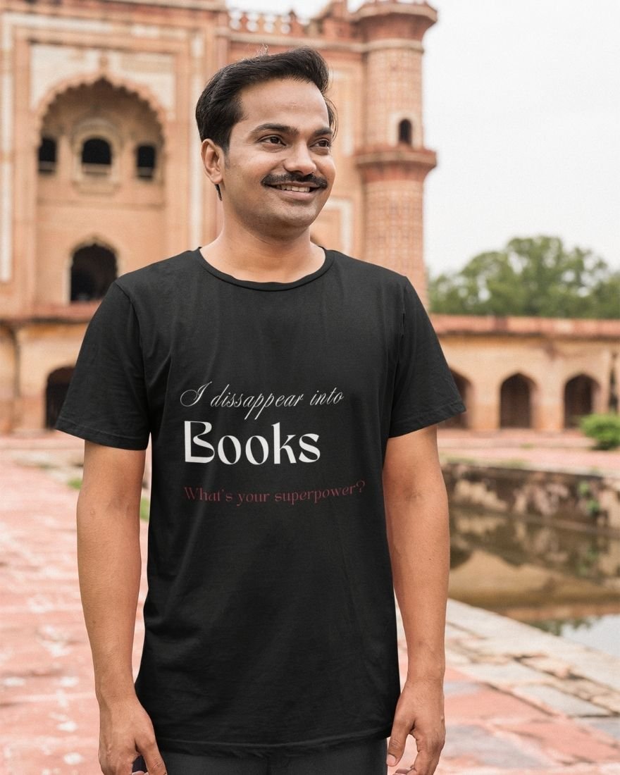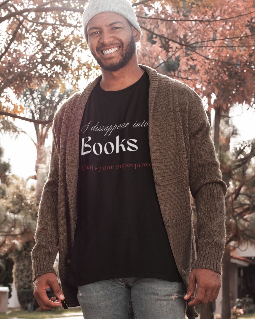 The I Disappear Into Books… What’s Your Superpower? T-shirt transforms imagination into identity. Designed for readers who don’t just read stories but live inside them, this piece celebrates the magic of literary escape.