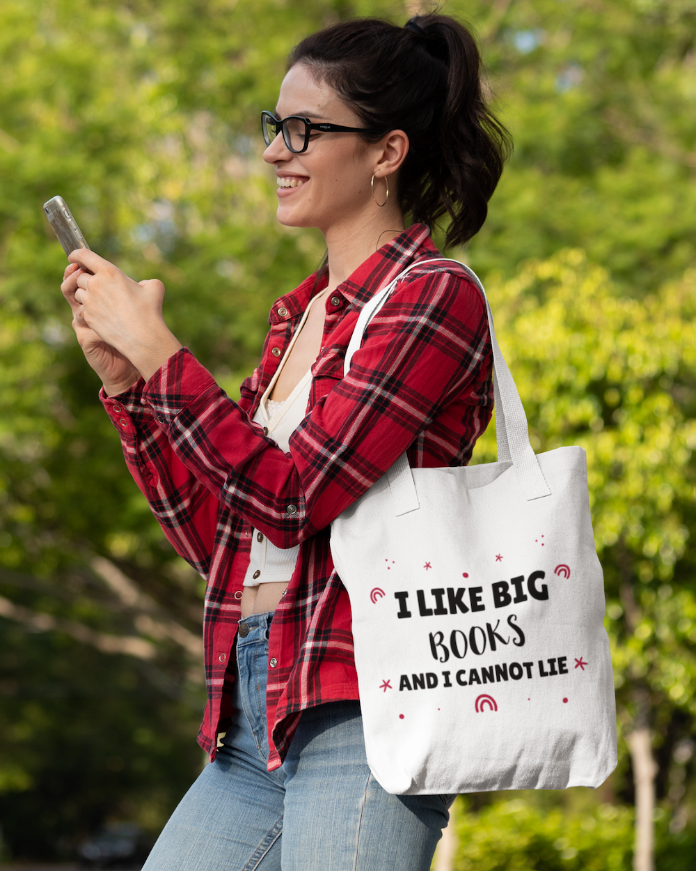 Introducing a fun and unapologetically bookish tote bag that celebrates your love for big, immersive reads. Featuring the playful line “I Like Big Books and I Cannot Lie,” this design is perfect for readers who proudly embrace their never-ending TBR piles and chunky novels.