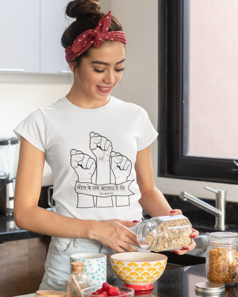Wear your voice with our Bol Ke Lab Azaad Hain T-shirt. Inspired by Faiz Ahmed Faiz’s iconic verse, this powerful tee is a reminder that words matter, truth matters, and courage begins with speaking up.