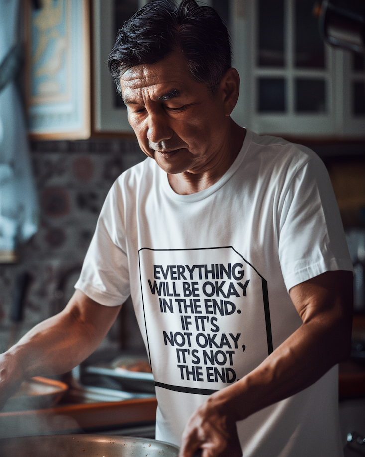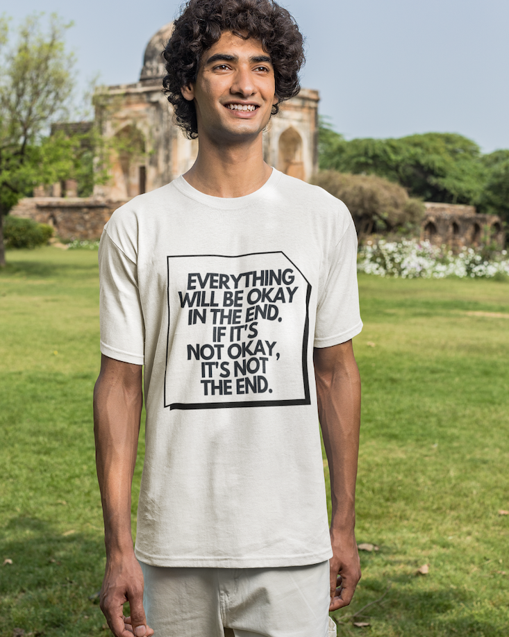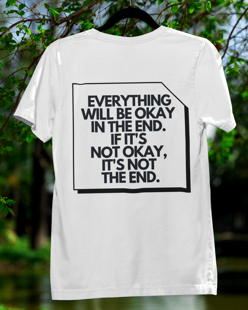 The Everything Will Be Okay In The End T-shirt combines meaningful typography with everyday comfort. Designed for those who believe every difficult chapter leads somewhere brighter, this piece carries quiet strength in clean, timeless typography.