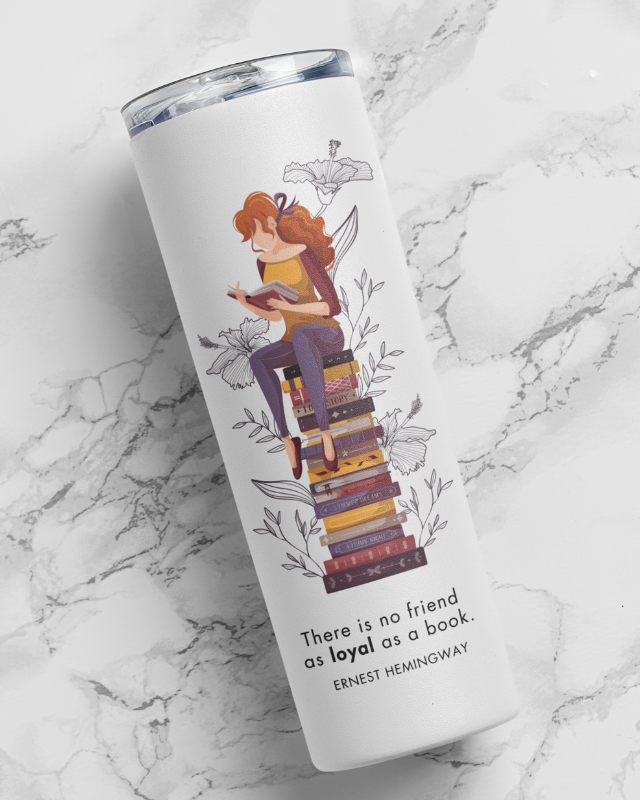 Carry a timeless literary truth into your everyday routine with this beautifully designed “There is no friend as loyal as a book” tumbler. Inspired by Ernest Hemingway’s beloved quote, this tumbler celebrates the quiet companionship that only books can offer. The soft illustration of a reader perched atop a stack of books adds a warm, whimsical touch—perfect for those who find comfort, escape, and understanding within the pages of a story. Whether you’re enjoying your morning coffee, taking a peaceful tea break, or getting lost in a good book, this tumbler becomes a gentle reminder of the loyalty and solace that reading brings.