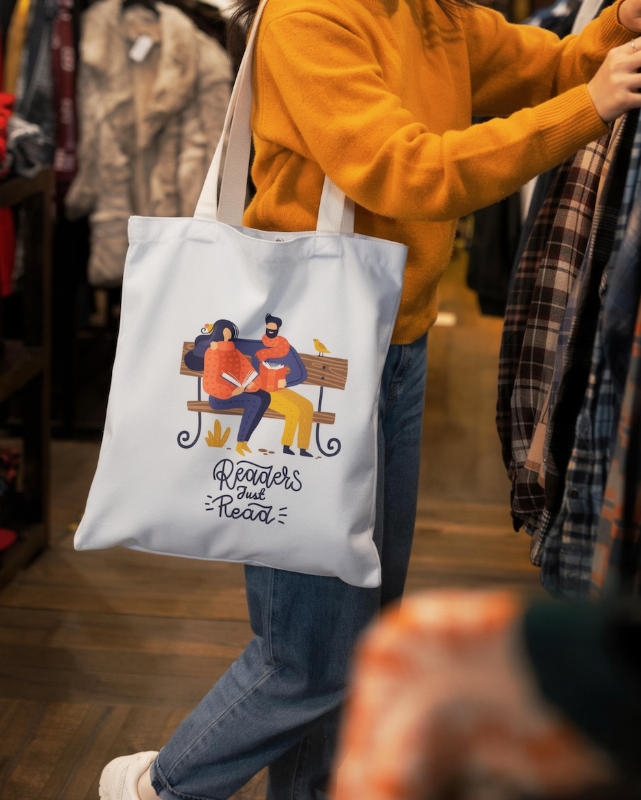 Designed for readers who believe in the simple joy of reading, this “Readers Just Read” tote bag blends a cozy illustration with a meaningful message. It beautifully captures the quiet, everyday essence of being a reader.