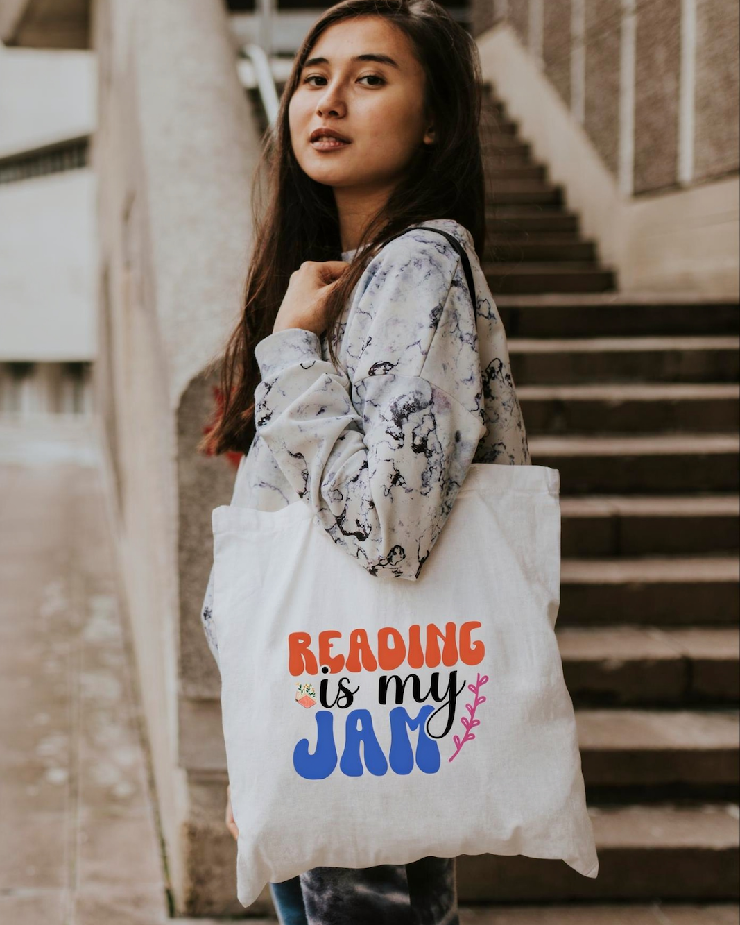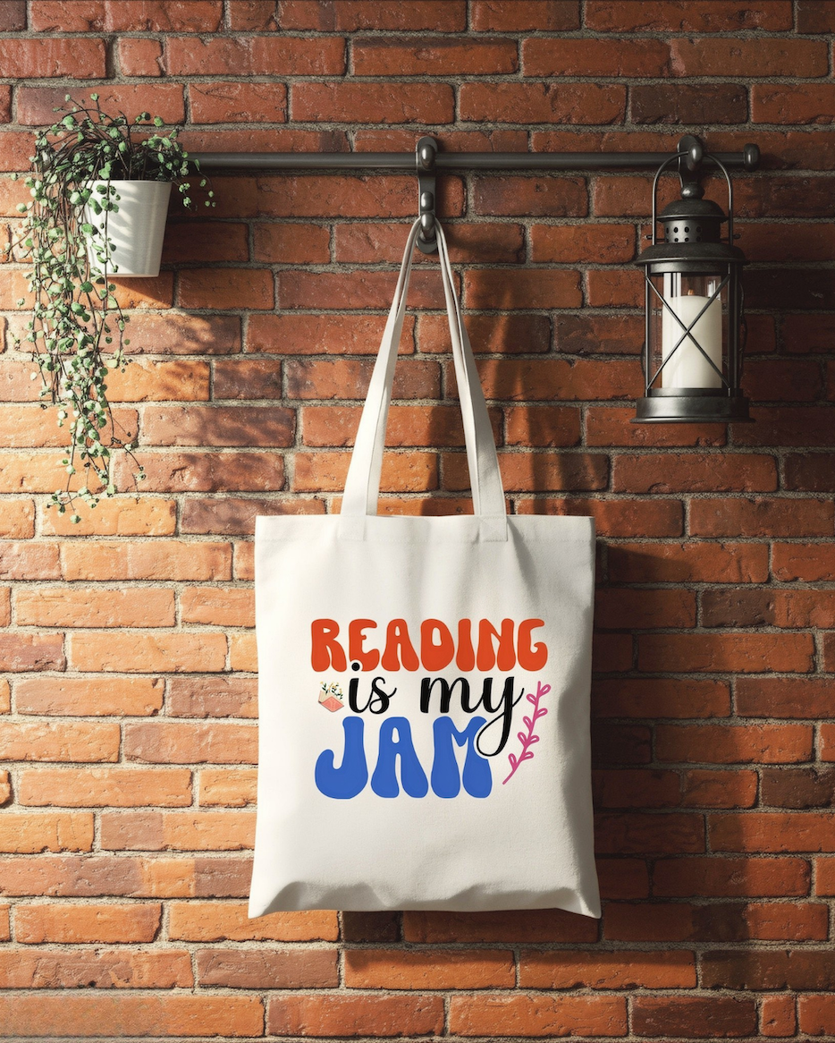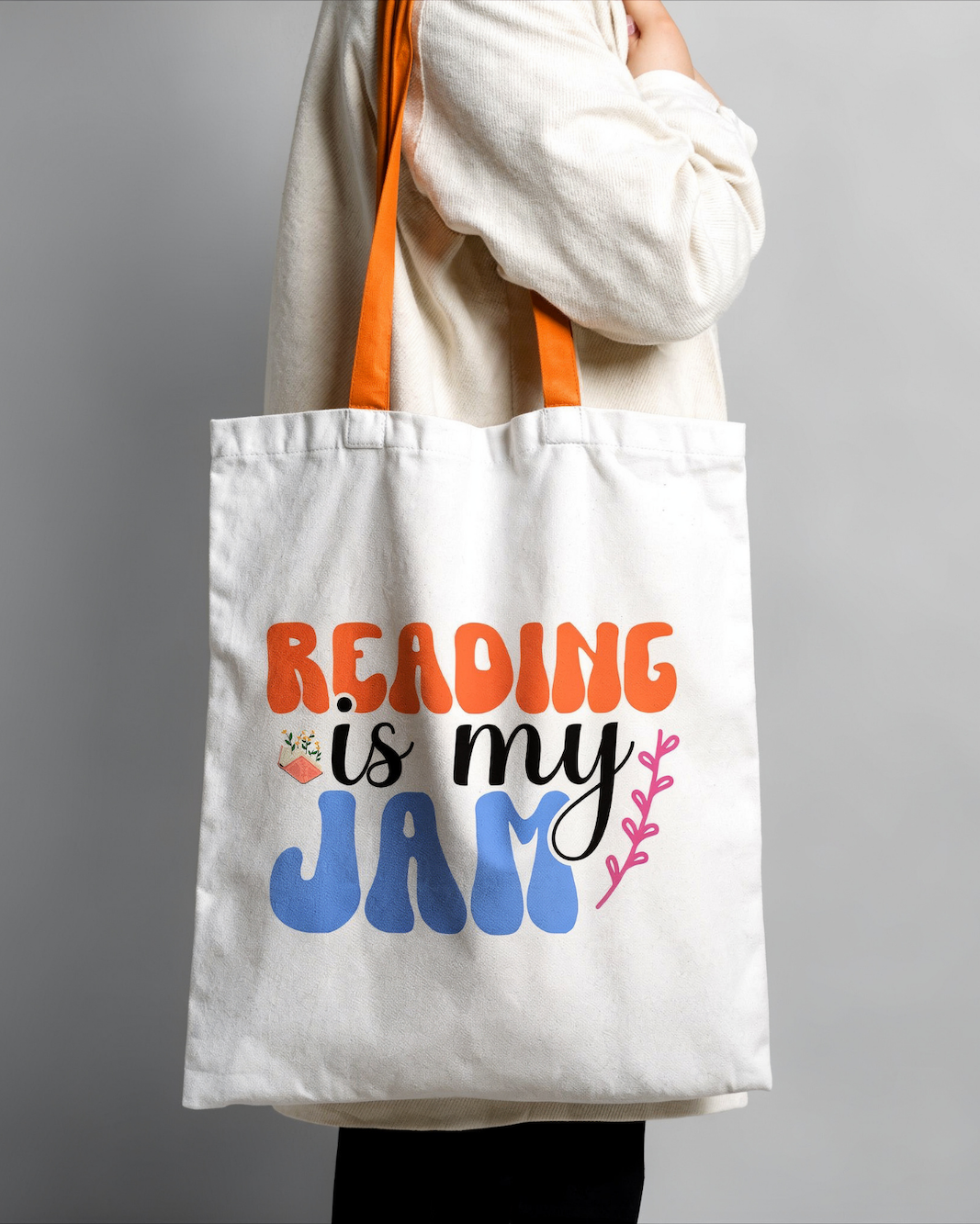 Introducing a fun and expressive tote bag for readers who proudly wear their love for books. Featuring the playful phrase “Reading Is My Jam,” this design captures the joy, comfort, and personality that reading brings into everyday life.