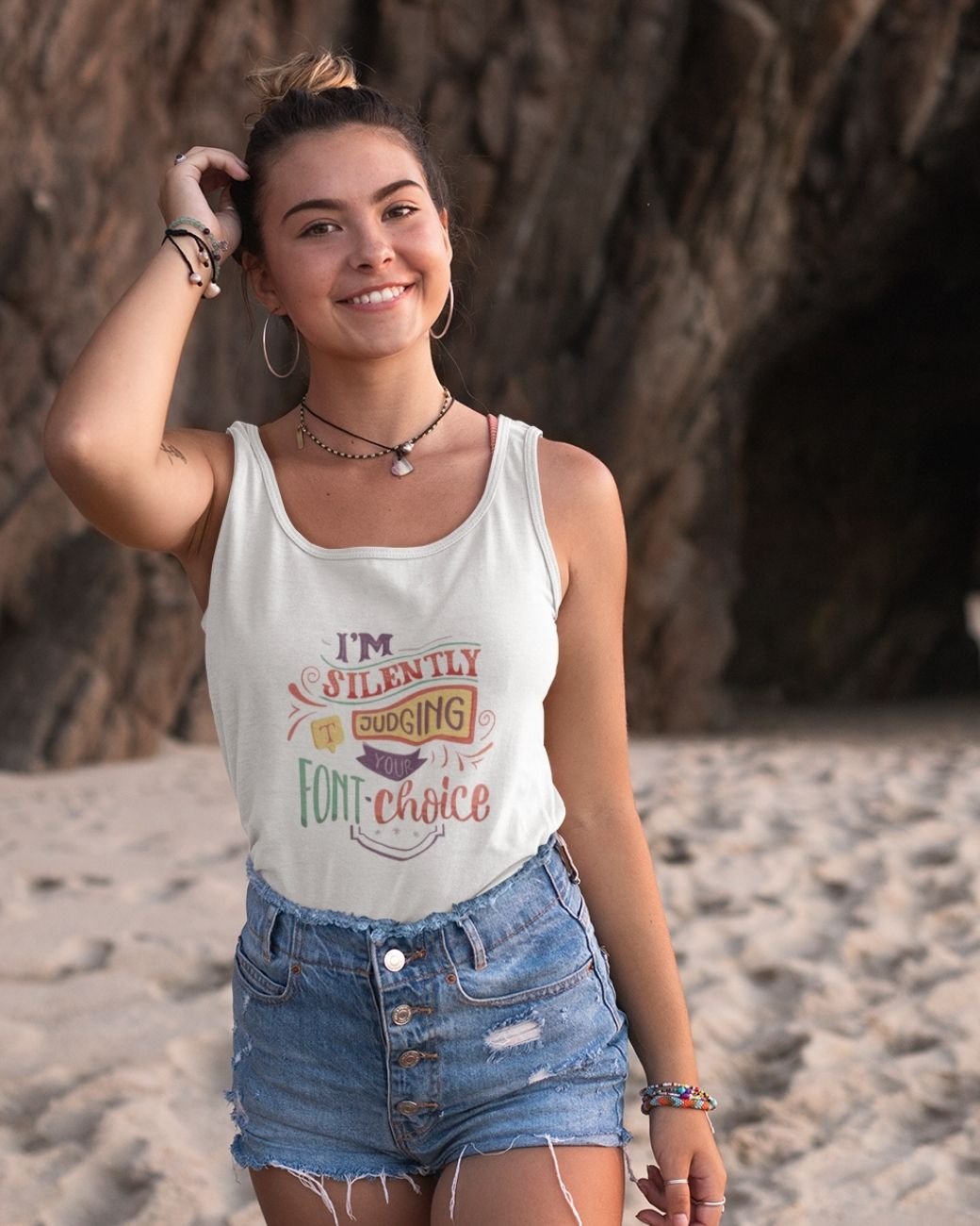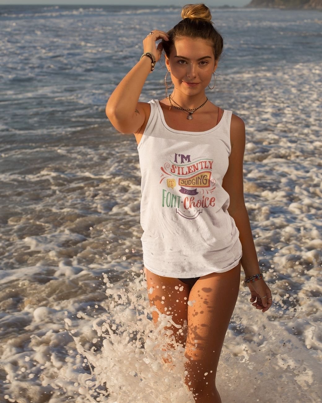 Some people notice the little details others miss. This “I’m Silently Judging Your Font Choice” tank top celebrates the quiet satisfaction of good typography and thoughtful design. Created for readers, writers, designers, and lovers of beautiful words, this piece blends creative humour with everyday comfort. Whether you are editing a manuscript, designing your next project, or simply appreciating good lettering on a bookstore shelf, this tank top is made for observant minds and quietly opinionated creatives.