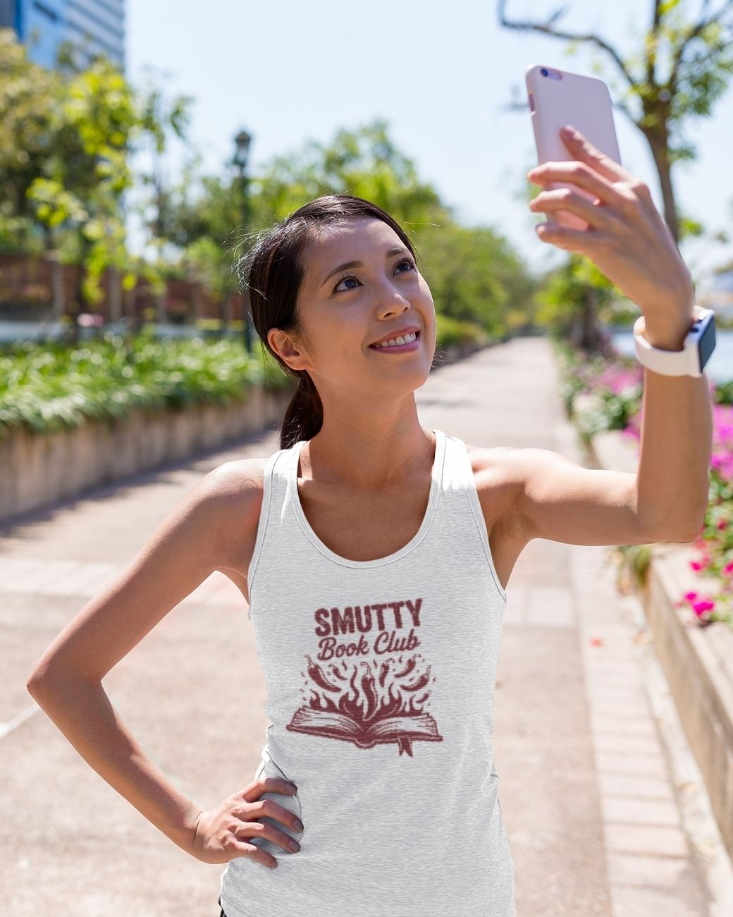 This playful tank top celebrates readers who enjoy books that are impossible to put down. The phrase “Smutty Book Club” captures the fun of sharing bold, addictive stories with fellow readers.