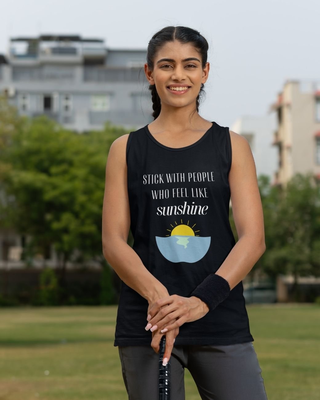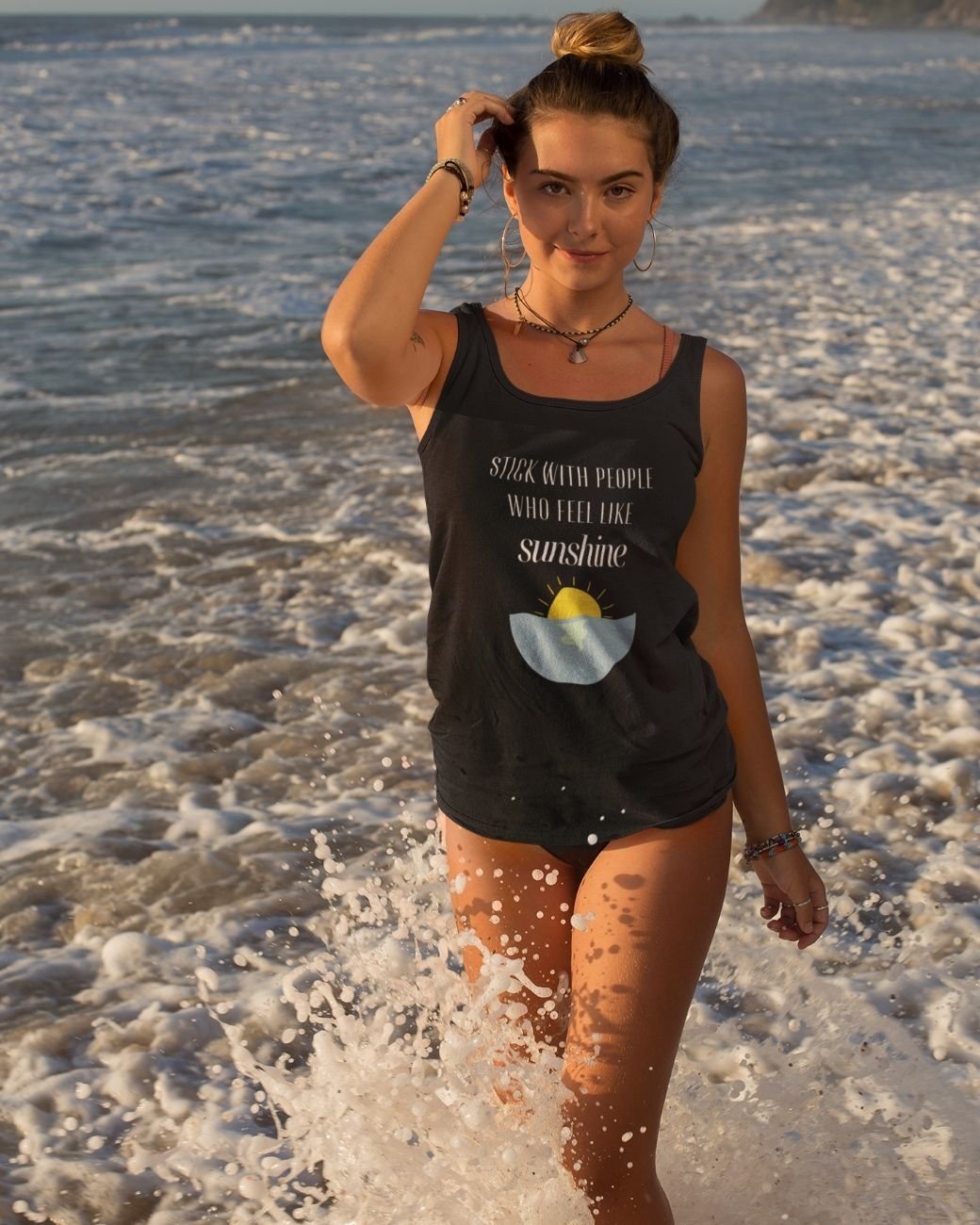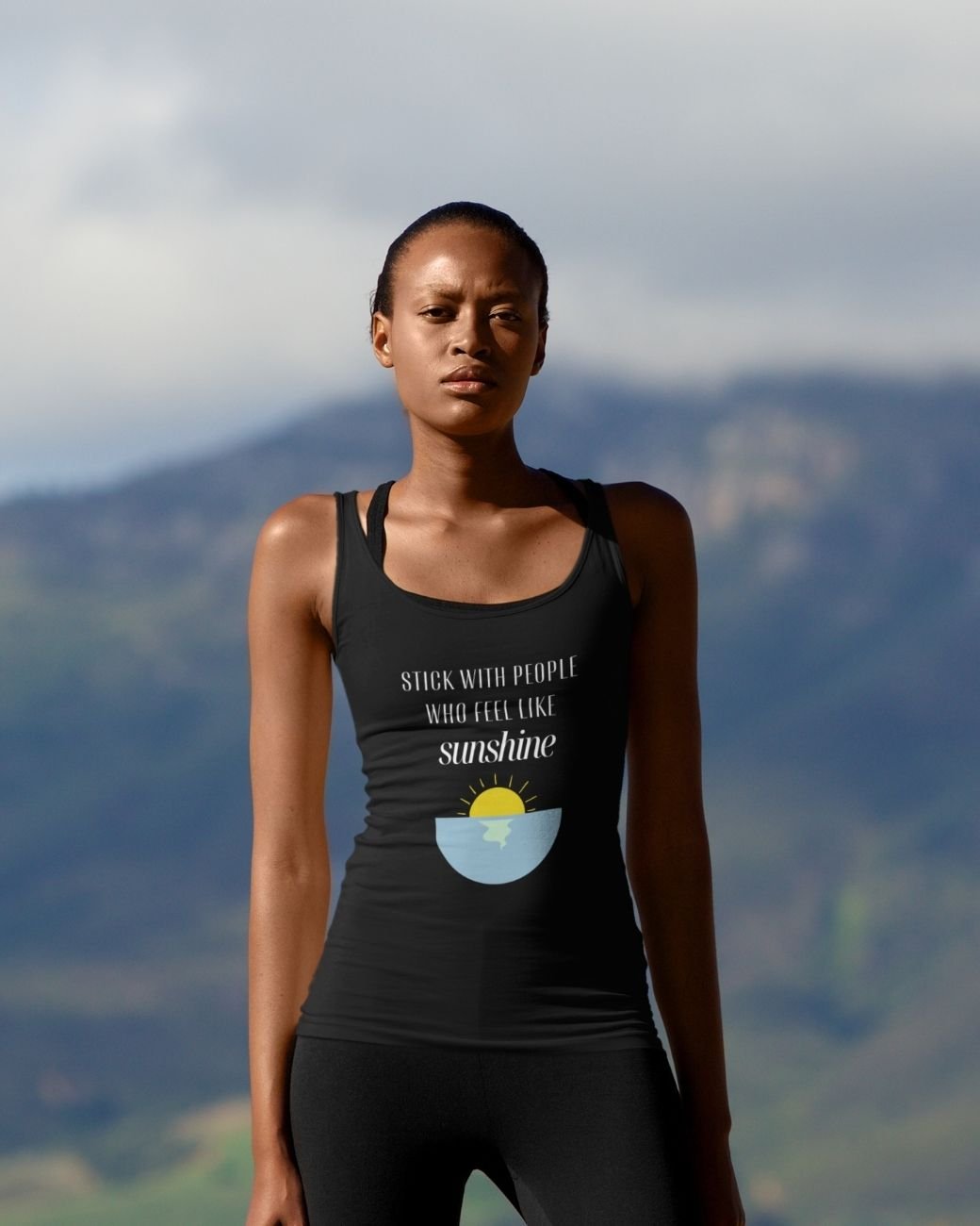 This uplifting tank top celebrates the people who make life feel a little brighter. The phrase “Stick With People Who Feel Like Sunshine” reminds us to surround ourselves with kindness, warmth, and genuine connection.