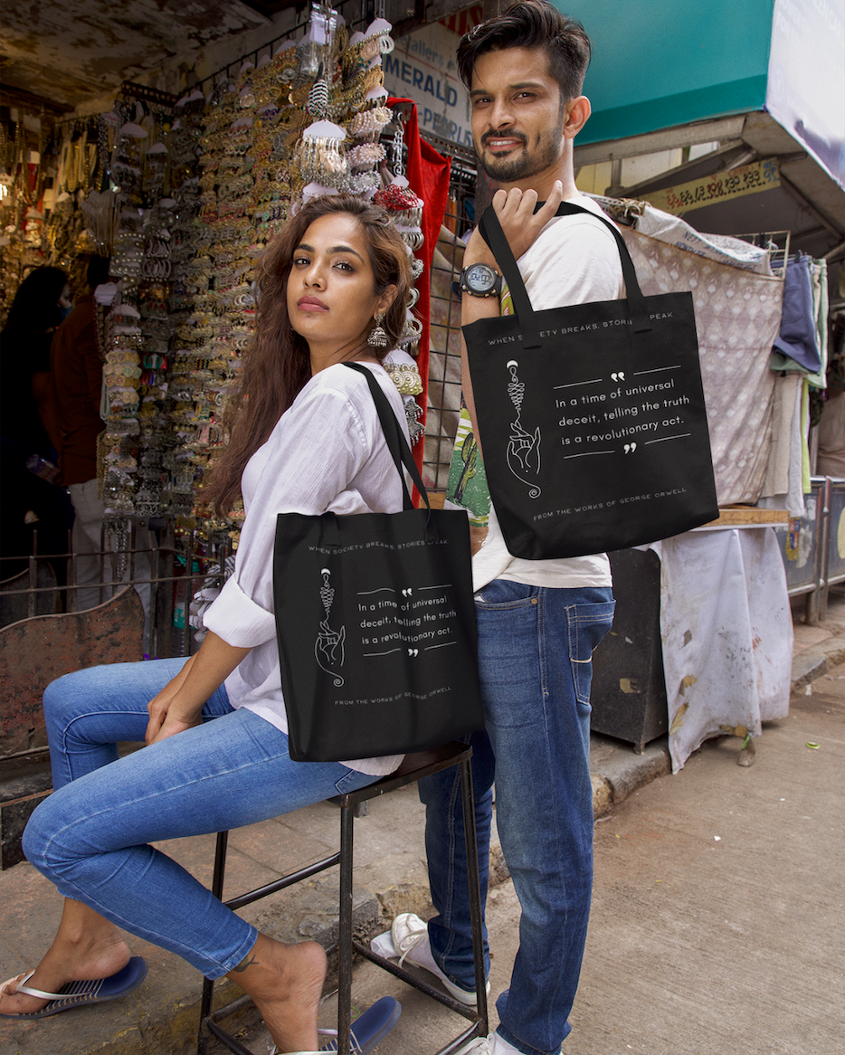 Introducing a bold and thought-provoking tote bag inspired by the powerful words of George Orwell: “In a time of universal deceit, telling the truth is a revolutionary act.” This design speaks to readers who value honesty, awareness, and the courage to think independently.
