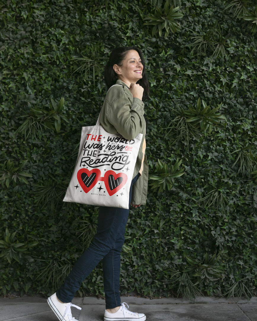 With bold, expressive typography and playful heart illustrations, the design feels lively, modern, and full of personality. It reflects the joy, freedom, and endless possibilities that come with being a reader, making it both eye-catching and meaningful. Spacious and versatile, this tote is perfect for carrying your books, daily essentials, or current reads. Whether you’re heading to a bookstore, library, café, or simply out for the day, it adds a bright and confident touch to your everyday style.
