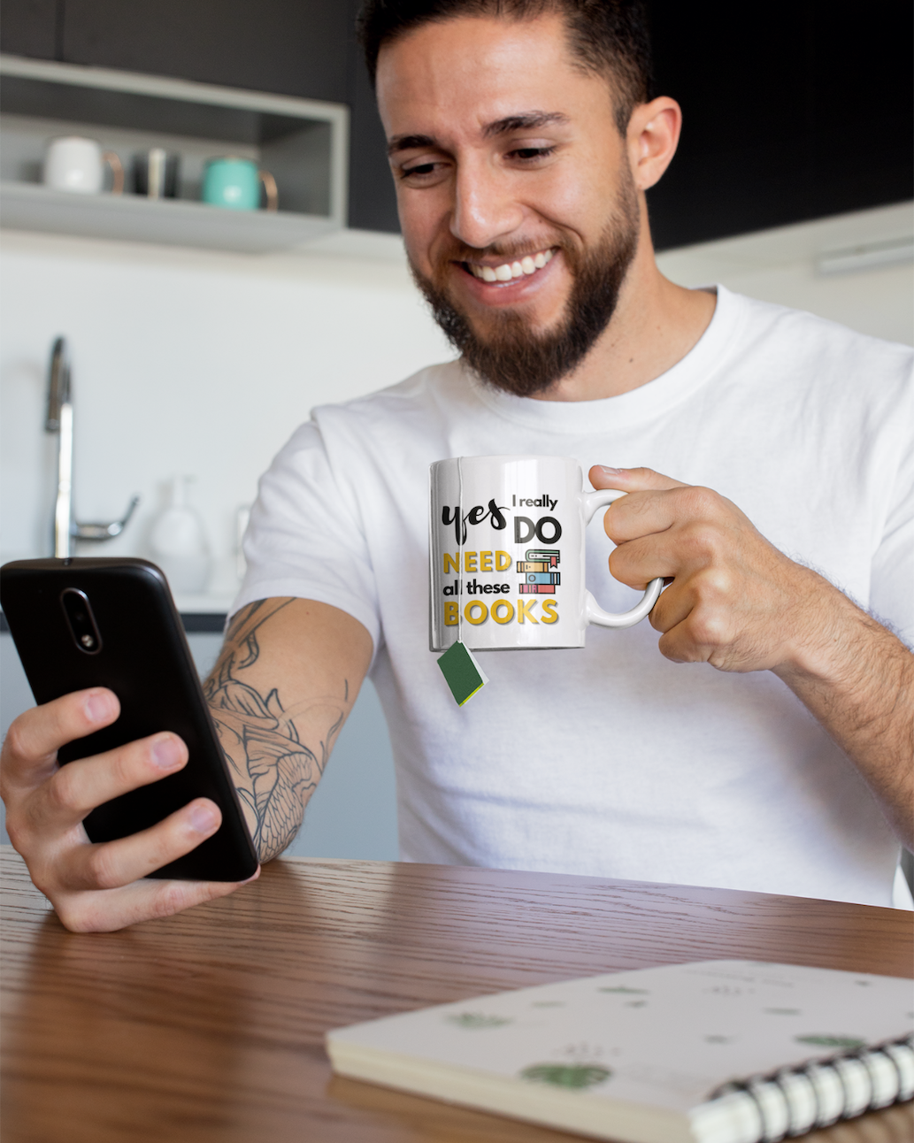 Begin your day with a reminder that every book has a story waiting to be discovered. This ceramic mug features the playful line “Yes, I Really Do Need All These Books,” celebrating the joy of growing bookshelves and endless reading lists. Designed for devoted readers and proud bibliophiles, this mug brings a touch of humor and recognition to your daily coffee ritual.