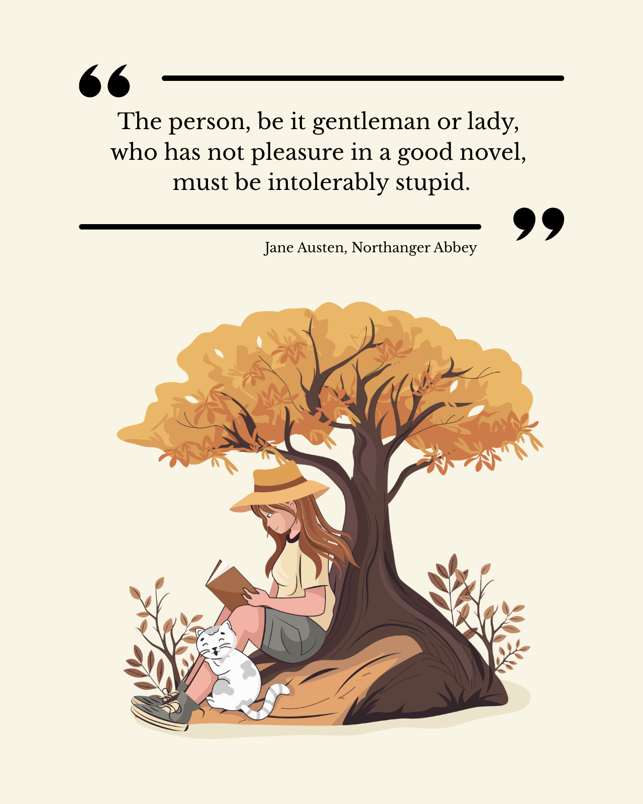 Designed for readers who find joy in every good book, this Jane Austen quote tote bag blends literary wit with a soft, aesthetic design. The warm illustration and timeless quote make it a charming addition to your everyday style.